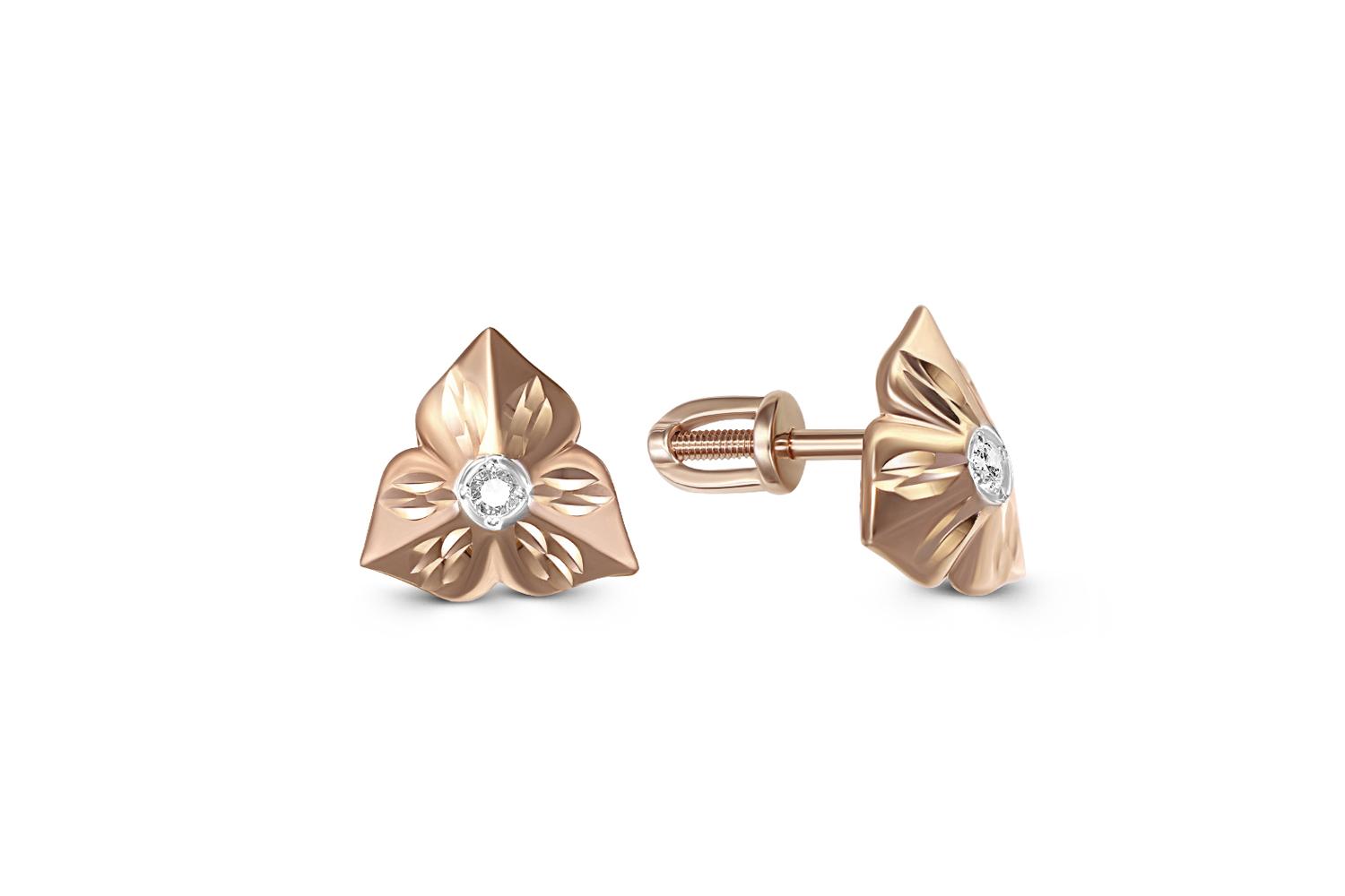 Мастера компании NEWGOLD, приложив всё свое мастерство и искусство, создали для Вас на нашем собственном производстве Серьги-пусеты Цветы из красного золота с 2 фианитами.
