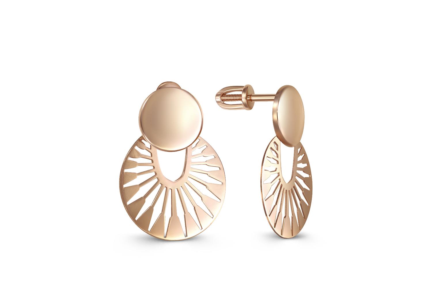 Мастера компании NEWGOLD, приложив всё свое мастерство и искусство, создали для Вас на нашем собственном производстве Серьги-пусеты из красного золота без вставок.