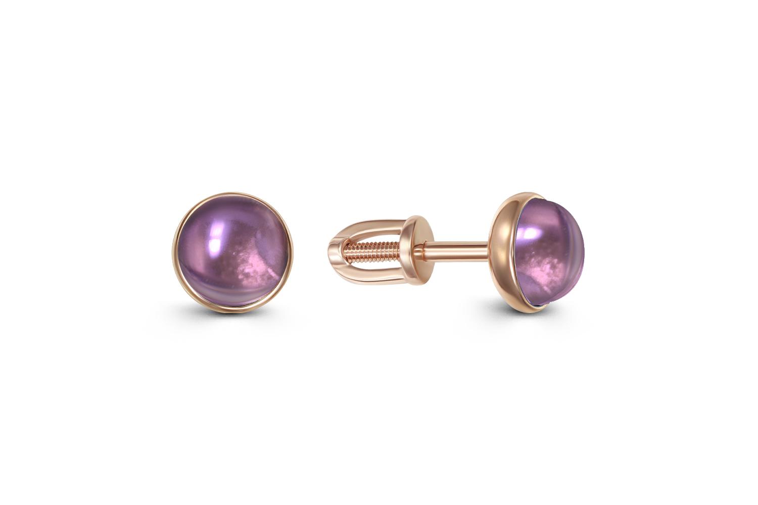 Мастера компании NEWGOLD, приложив всё свое мастерство и искусство, создали для Вас на нашем собственном производстве Серьги-пусеты из красного золота с 2 аметистами.