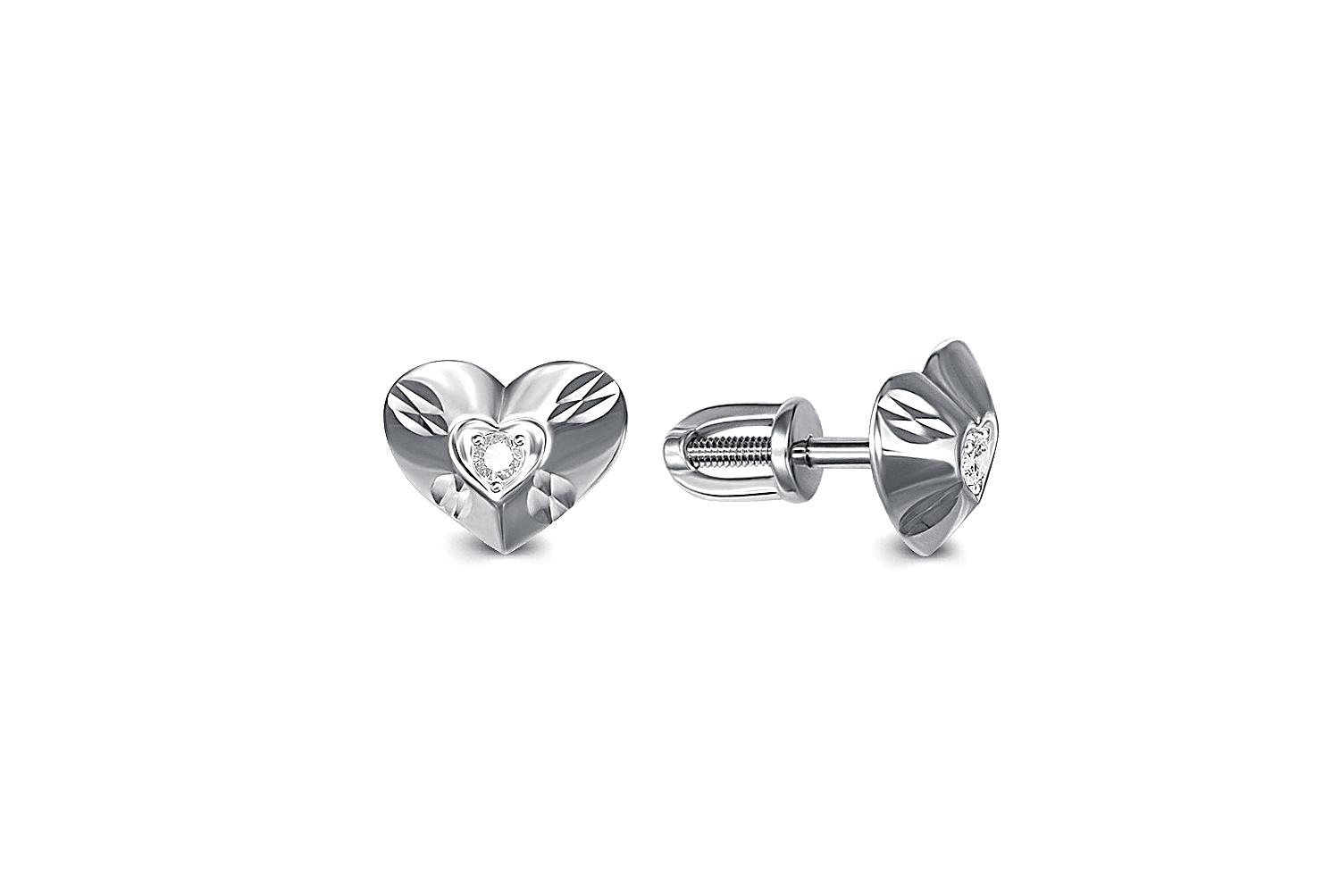 Мастера компании NEWGOLD, приложив всё свое мастерство и искусство, создали для Вас на нашем собственном производстве Серьги-пусеты Сердца из белого золота с 2 фианитами.