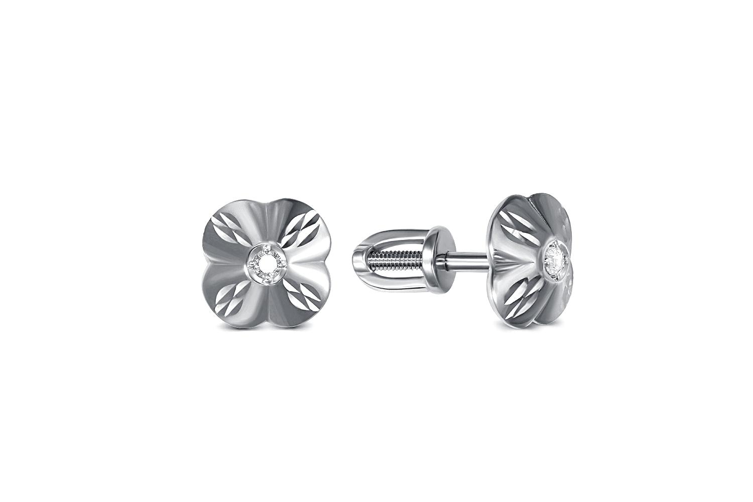 Мастера компании NEWGOLD, приложив всё свое мастерство и искусство, создали для Вас на нашем собственном производстве Серьги-пусеты Цветы из белого золота с 2 фианитами.