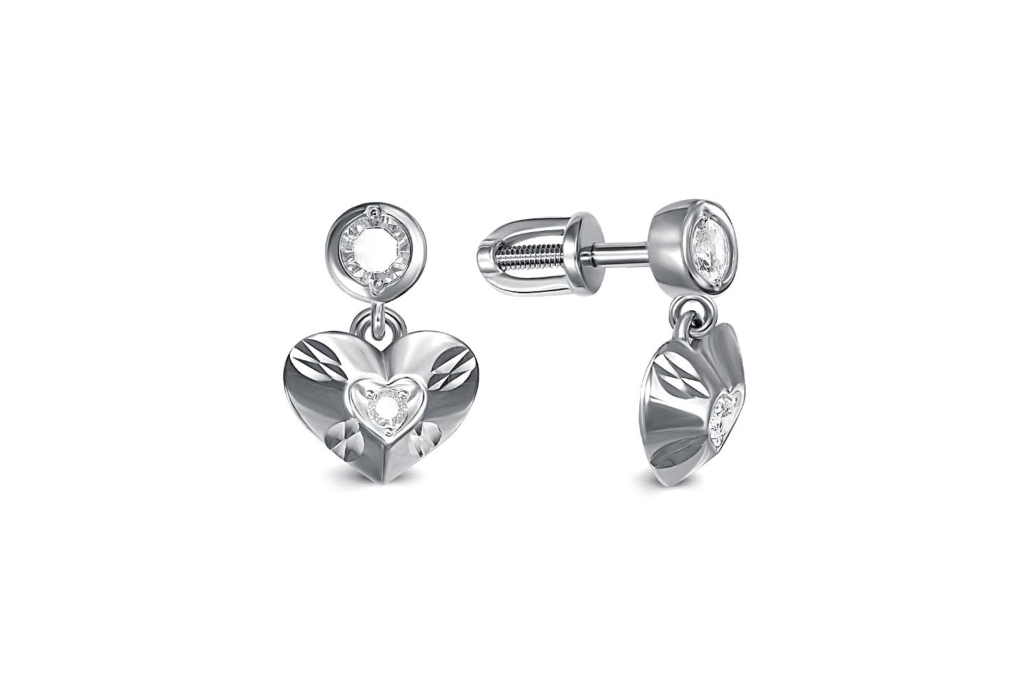 Мастера компании NEWGOLD, приложив всё свое мастерство и искусство, создали для Вас на нашем собственном производстве Серьги-пусеты Сердца из белого золота с 4 фианитами.