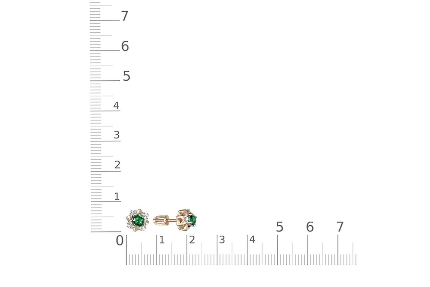 Изумруд Гт искусственный, количество 2 шт., огранка круг, размер 4 мм ; Бриллиант, количество 8 шт., огранка Кр-17, размер 1 мм, цвет 2, чистота 2