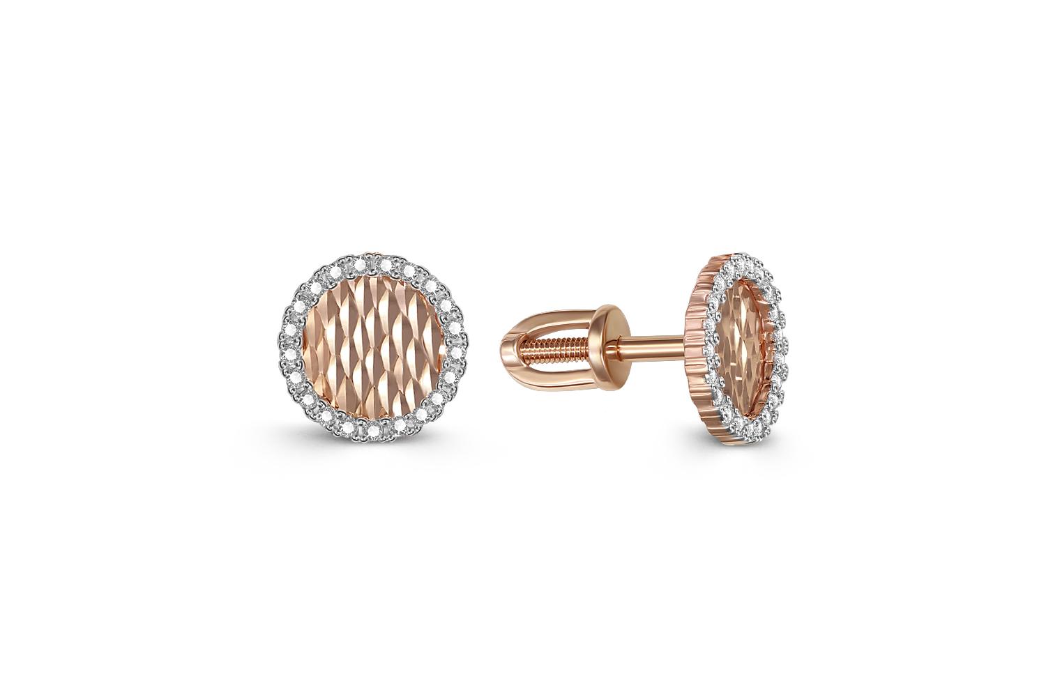 Мастера компании NEWGOLD, приложив всё свое мастерство и искусство, создали для Вас на нашем собственном производстве Серьги-пусеты из красного золота с 504 фианитами.