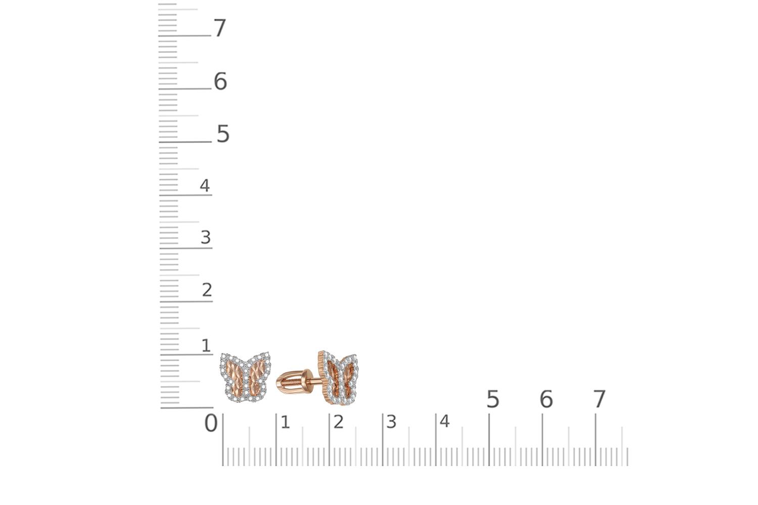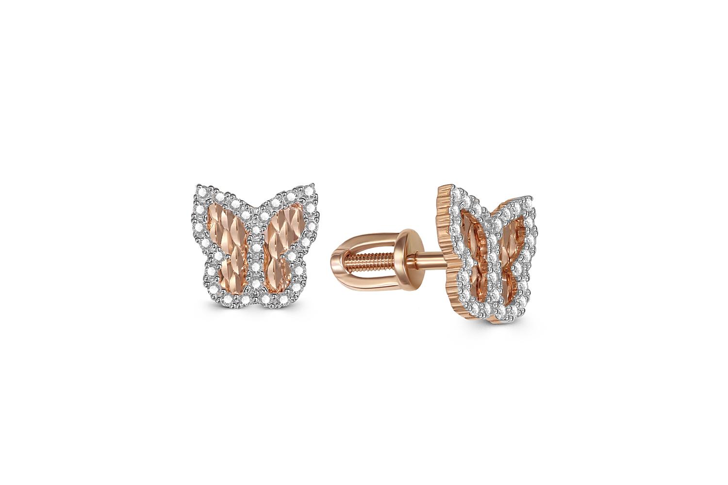 Мастера компании NEWGOLD, приложив всё свое мастерство и искусство, создали для Вас на нашем собственном производстве Серьги-пусеты Бабочки из красного золота с 56 фианитами.