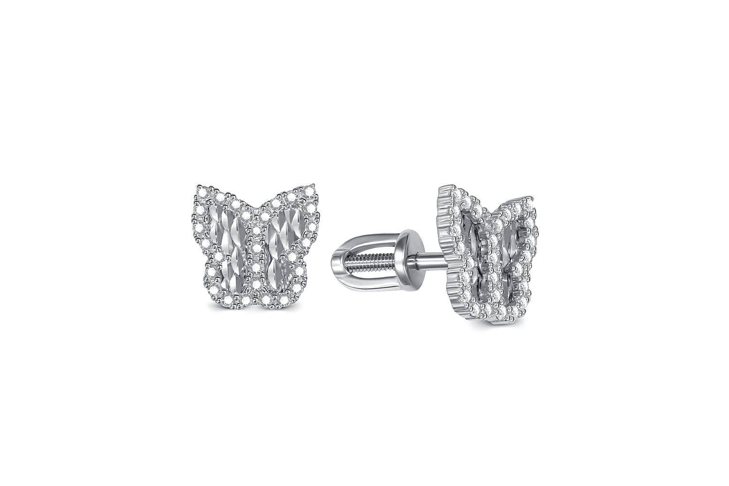 Мастера компании NEWGOLD, приложив всё свое мастерство и искусство, создали для Вас на нашем собственном производстве Серьги-пусеты Бабочки из белого золота с 56 фианитами.