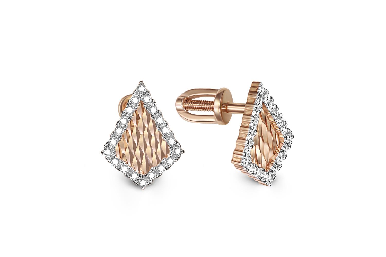 Мастера компании NEWGOLD, приложив всё свое мастерство и искусство, создали для Вас на нашем собственном производстве Серьги-пусеты из красного золота с 40 фианитами.