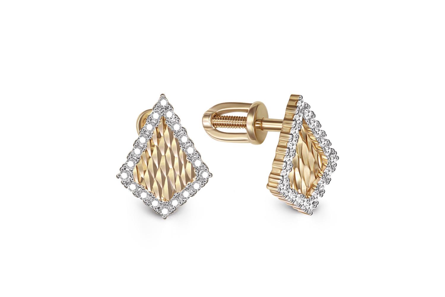 Мастера компании NEWGOLD, приложив всё свое мастерство и искусство, создали для Вас на нашем собственном производстве Серьги-пусеты из жёлтого золота с 40 фианитами.