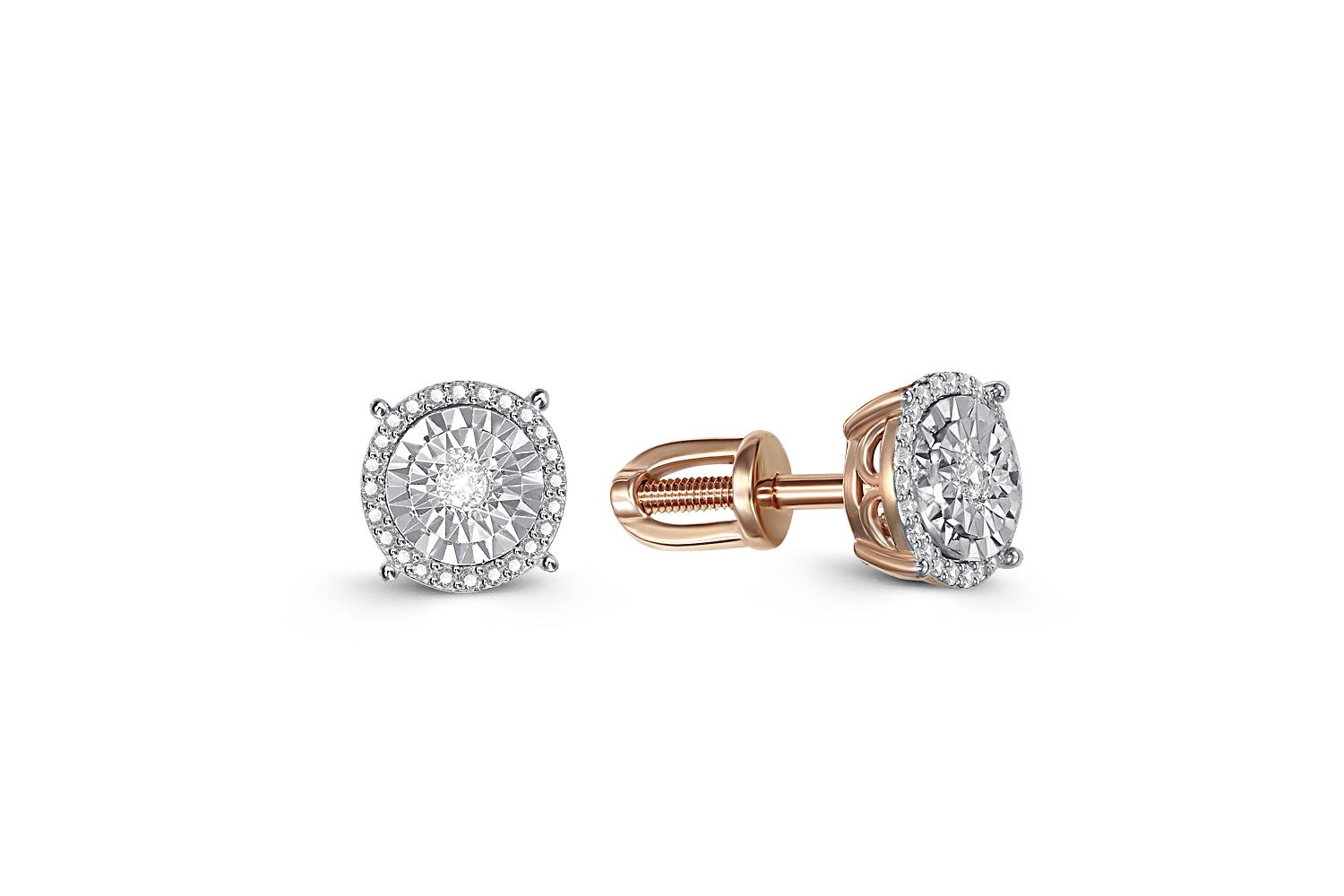Закажите Серьги-пусеты из красного золота с 50 бриллиантами с получением в Москве через курьерскую службу доставки напрямую с нашего производственного склада завода NEWGOLD!