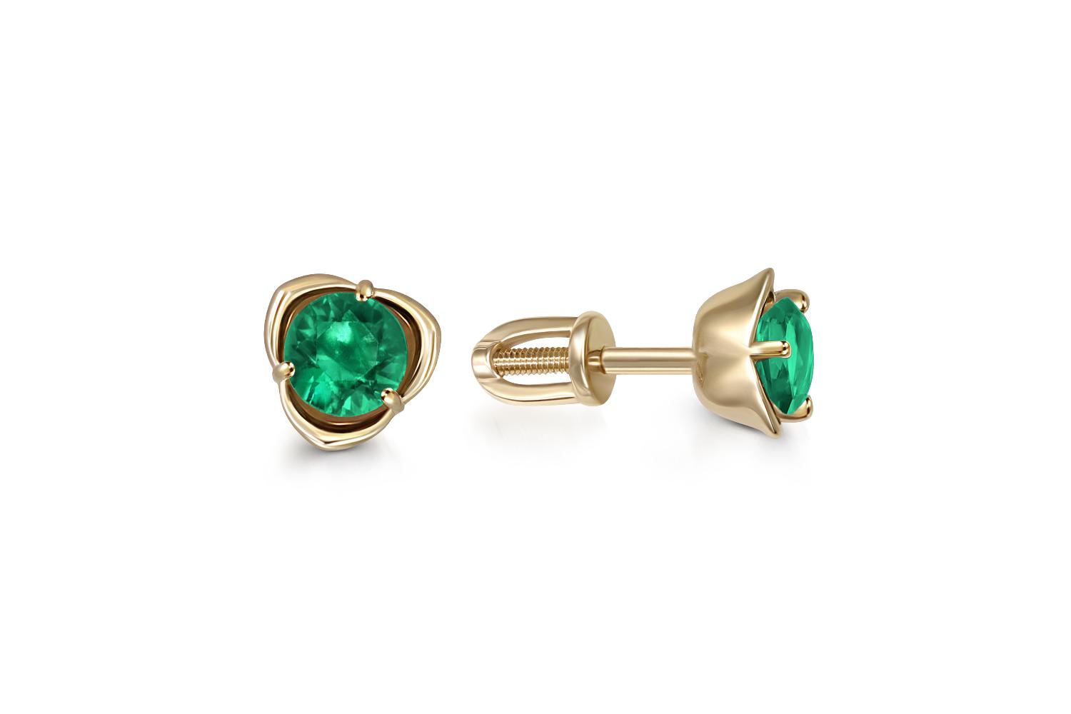 Мастера компании NEWGOLD, приложив всё свое мастерство и искусство, создали для Вас на нашем собственном производстве Серьги-пусеты Цветы из жёлтого золота с 2 изумрудами.