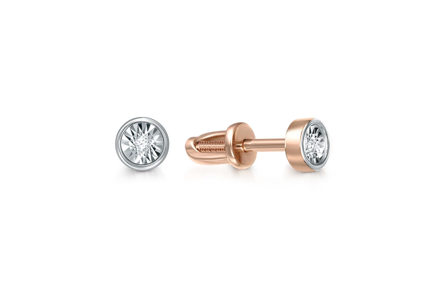 Золотые серьги в виде пусет гвоздиков подходят для любого повода. Они выполнены из комбинированного красного и белого золота 585 пробы, что гарантирует высокое качество и долговечность. Эти серьги отличаются классической моделью, сочетающей нежный стиль с формой круга и алмазной гранью. Алмазная грань добавляет блеска и сияния, а прозрачные бриллианты подчеркивают элегантность украшения.
