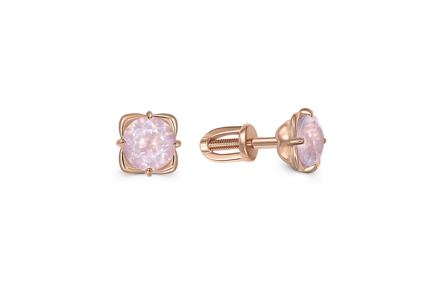 Мастера компании NEWGOLD, приложив всё свое мастерство и искусство, создали для Вас на нашем собственном производстве Серьги-пусеты из красного золота с 2 кварцами.