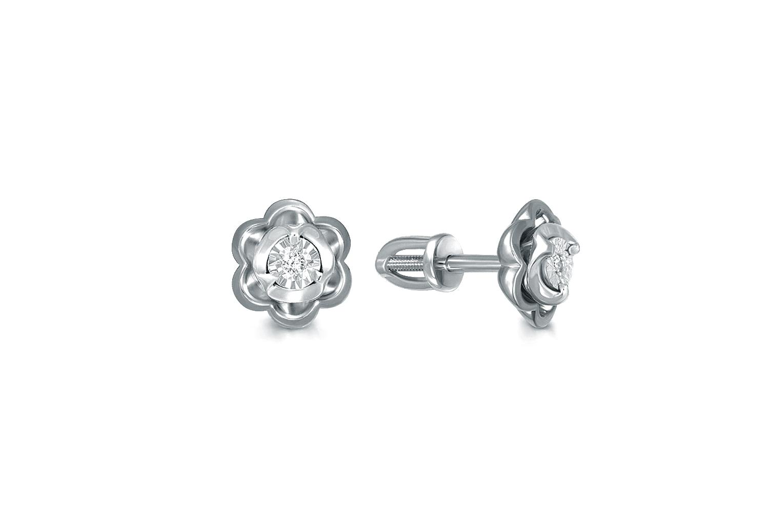 Мастера компании NEWGOLD, приложив всё свое мастерство и искусство, создали для Вас на нашем собственном производстве Серьги-пусеты Цветы из белого золота с 2 бриллиантами.