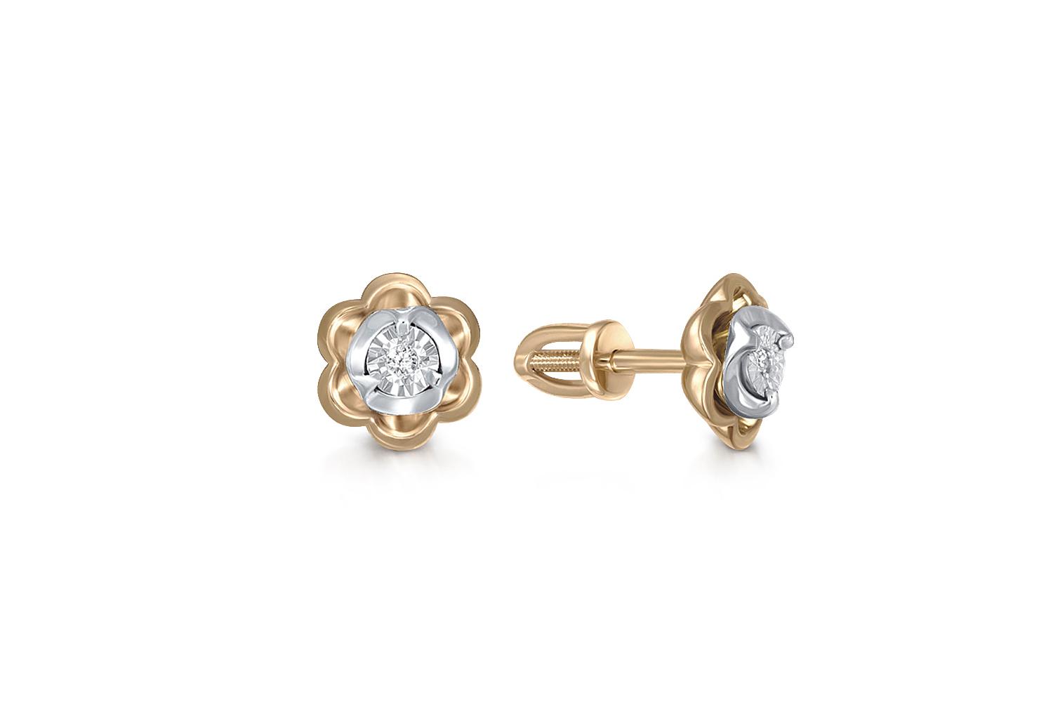 Мастера компании NEWGOLD, приложив всё свое мастерство и искусство, создали для Вас на нашем собственном производстве Серьги-пусеты Цветы из жёлтого золота с 2 бриллиантами.