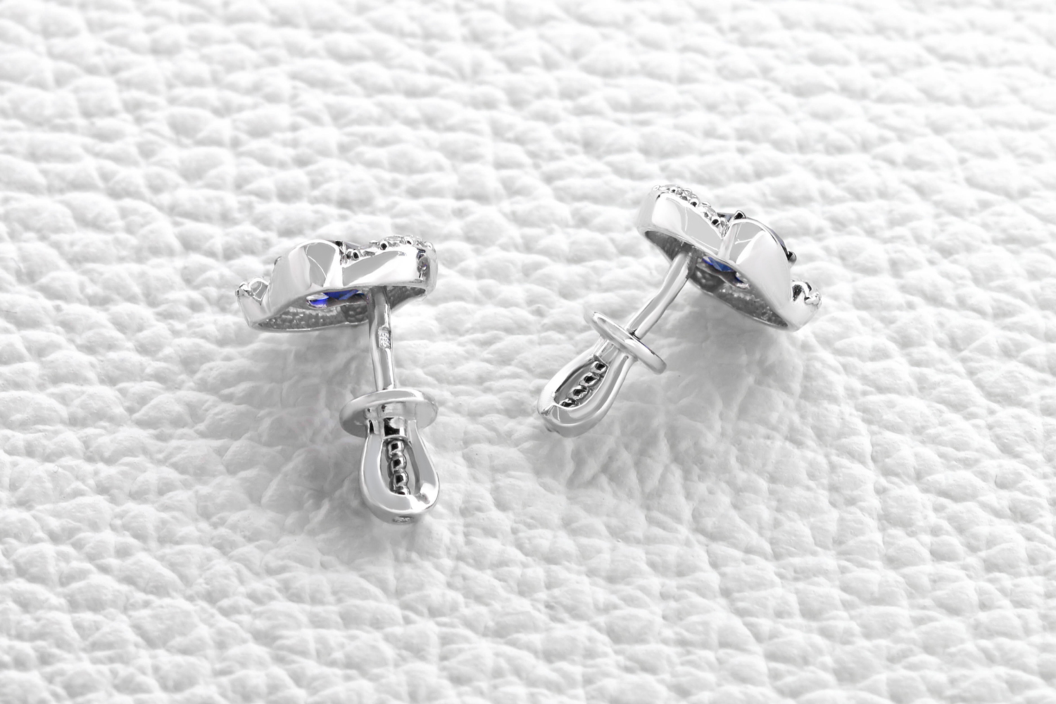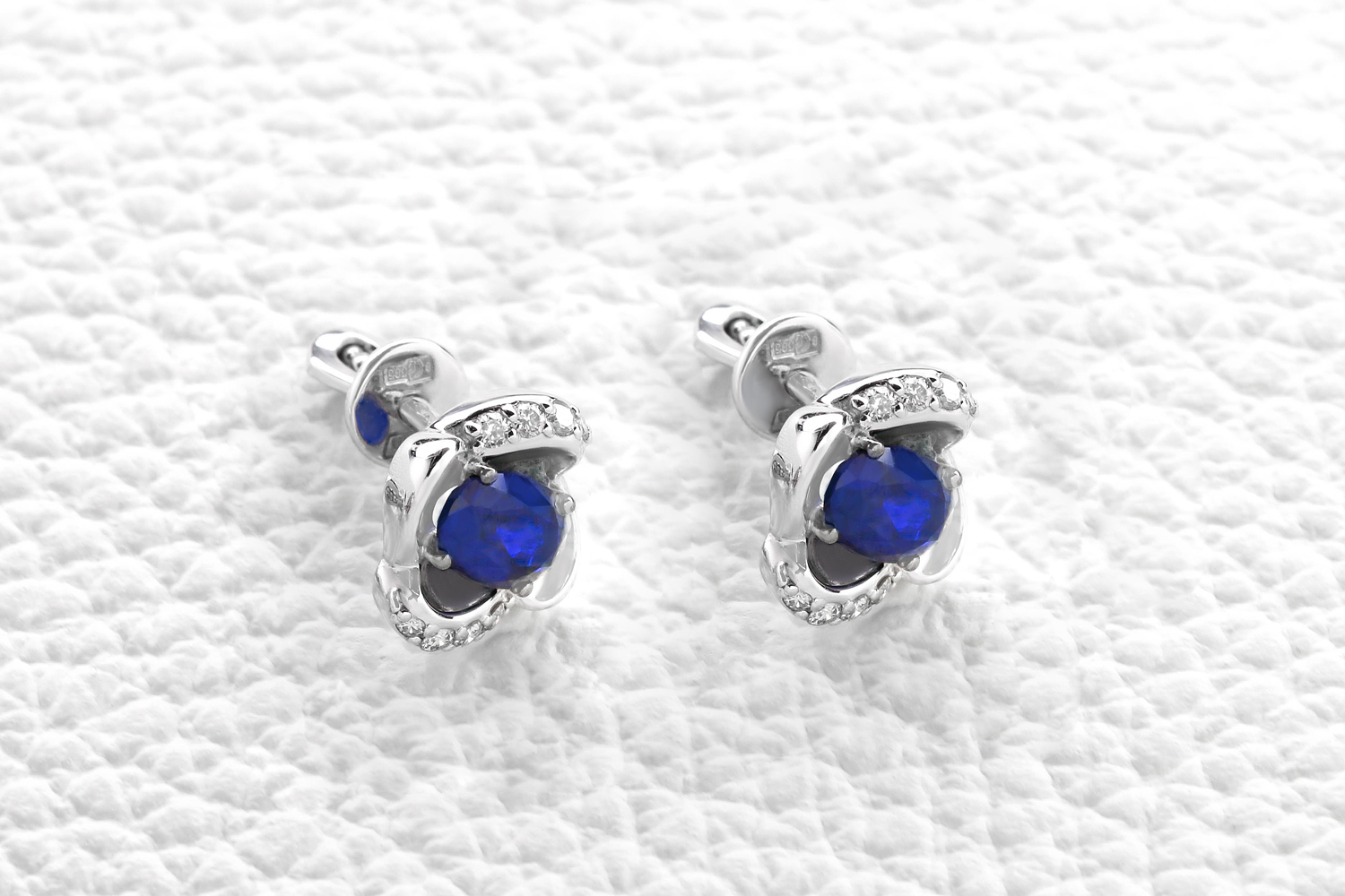 Мастера компании NEWGOLD, приложив всё свое мастерство и искусство, создали для Вас на нашем собственном производстве Серьги-пусеты из белого золота с 2 корундами и 16 бриллиантами.
