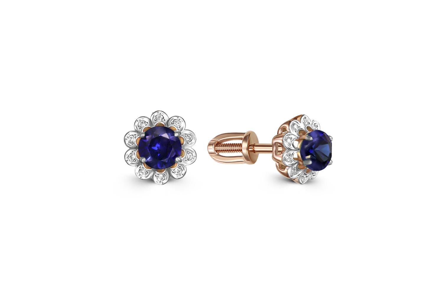 Мастера компании NEWGOLD, приложив всё свое мастерство и искусство, создали для Вас на нашем собственном производстве Серьги-пусеты Цветы из красного золота с 2 корундами и 20 бриллиантами.