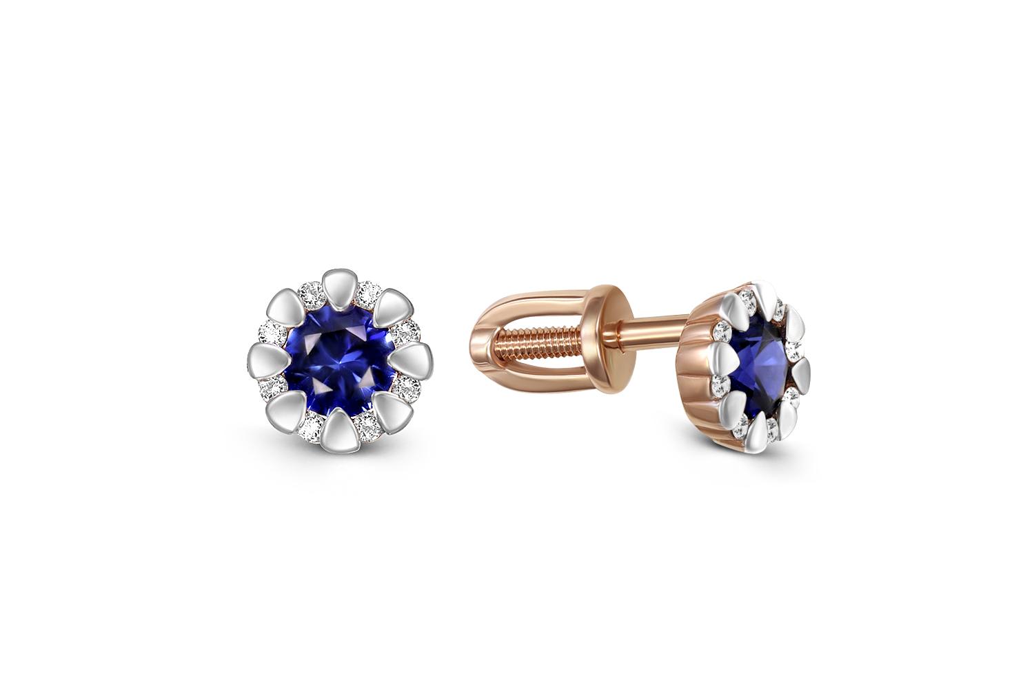 Мастера компании NEWGOLD, приложив всё свое мастерство и искусство, создали для Вас на нашем собственном производстве Серьги-пусеты из красного золота с 2 корундами и 16 бриллиантами.