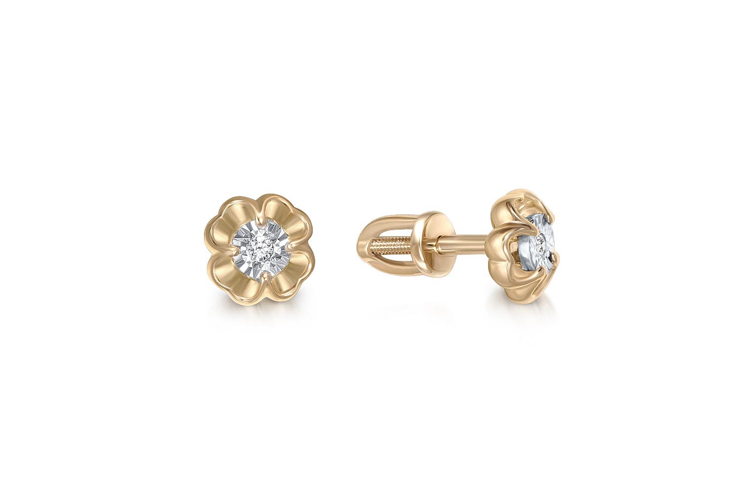 Мастера компании NEWGOLD, приложив всё свое мастерство и искусство, создали для Вас на нашем собственном производстве Серьги-пусеты Цветы из жёлтого золота с 2 бриллиантами.
