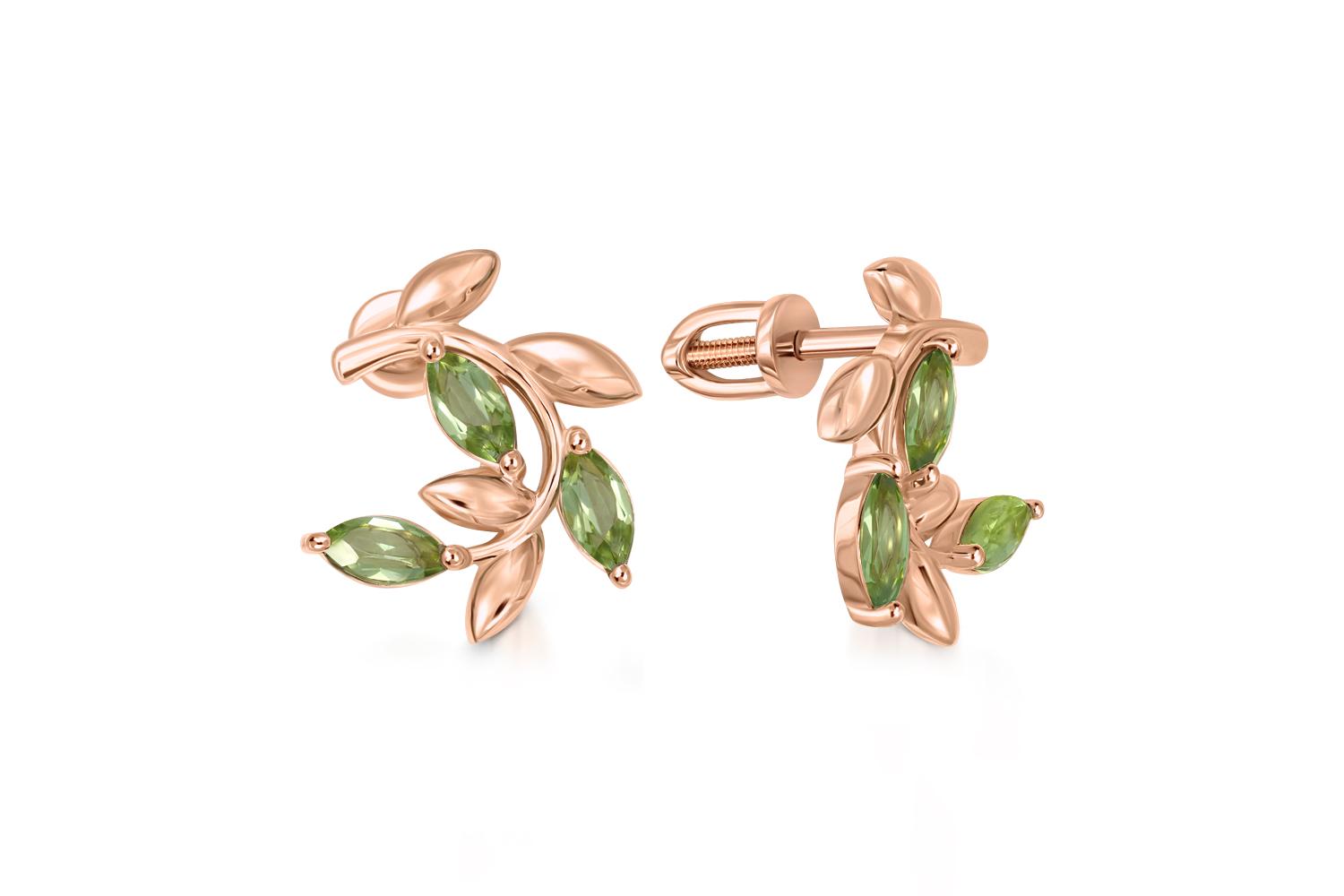 Закажите Серьги-пусеты Веточки из красного золота с 6 хризолитами с получением в Москве через курьерскую службу доставки напрямую с нашего производственного склада завода NEWGOLD!