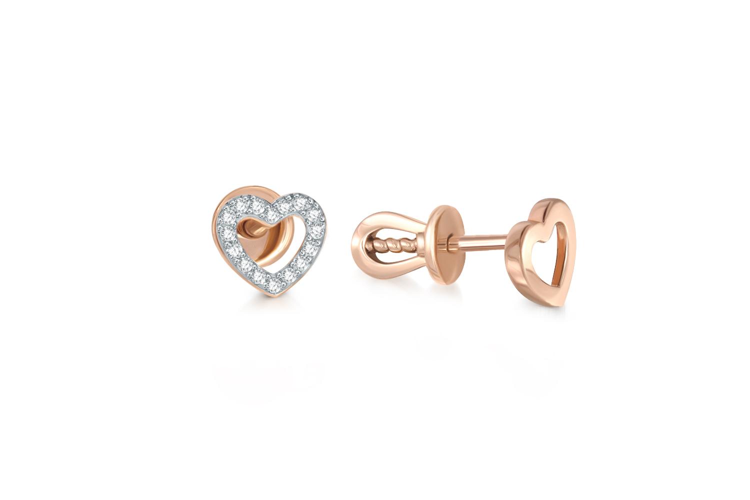Закажите Серьги-пусеты Сердца из красного золота с 16 фианитами с получением в Москве через курьерскую службу доставки напрямую с нашего производственного склада завода NEWGOLD!