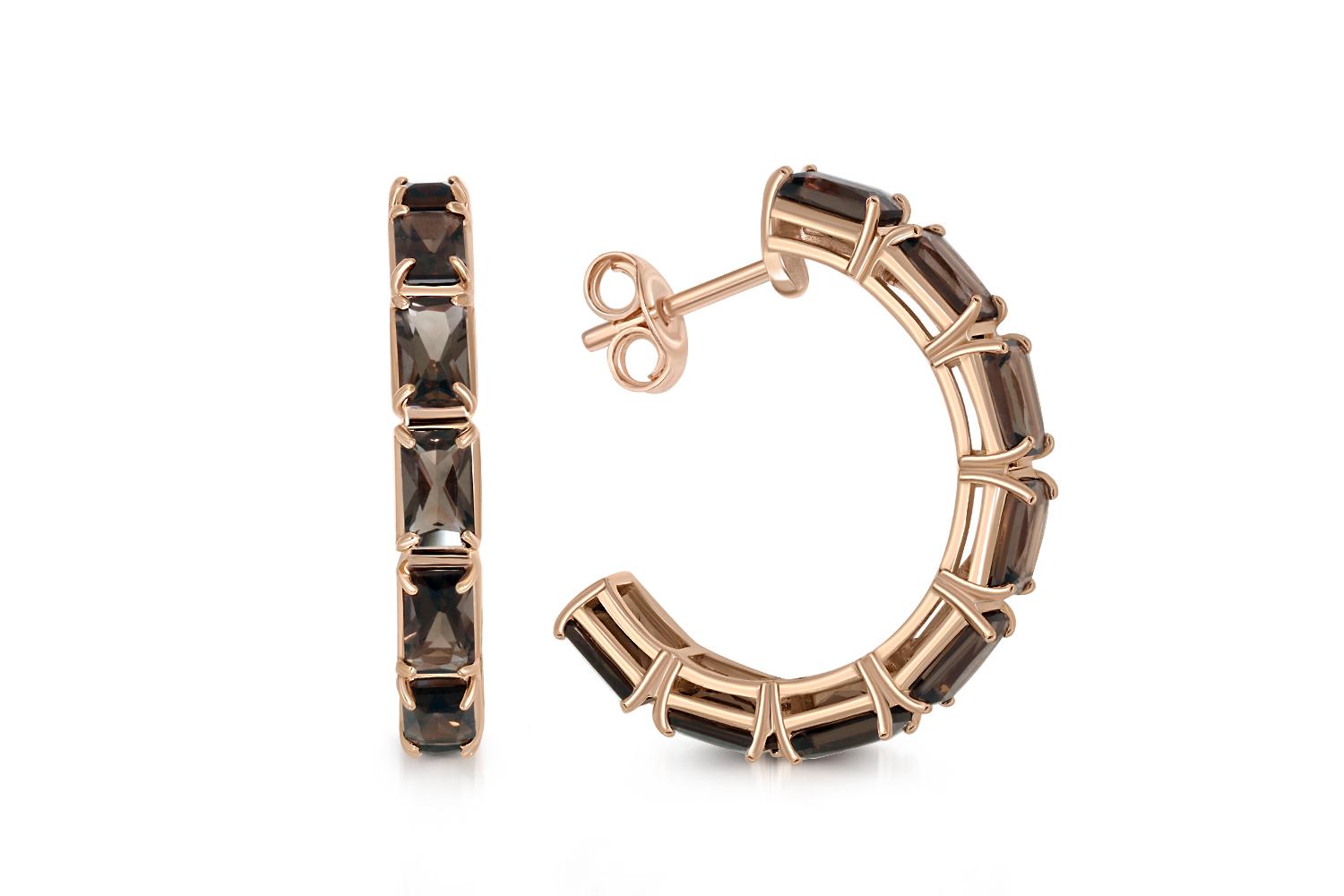 Золотые серьги пусеты гвоздики с 16 раухтопазами из красного золота 585 пробы. Главное преимущество этого ювелирного изделия – универсальность: аксессуар способен дополнить роскошный образ или разнообразить деловой стиль. Золото подчеркивает изысканность и элегантность раухтопазов, делая серьги настоящим произведением искусства. Раухтопаз является камнем, символизирующим спокойствие и душевное равновесие. Раухтопазы обладают глубоким и насыщенным коричневым цветом, что придает серьгам особый шарм и элегантность. Застежка-пусет обеспечивает комфортное и надежное крепление на мочке уха. Эти серьги идеально подойдут для вечернего выхода или особого случая. Они подчеркнут вашу индивидуальность, изысканный вкус и станут центром внимания на любом мероприятии.