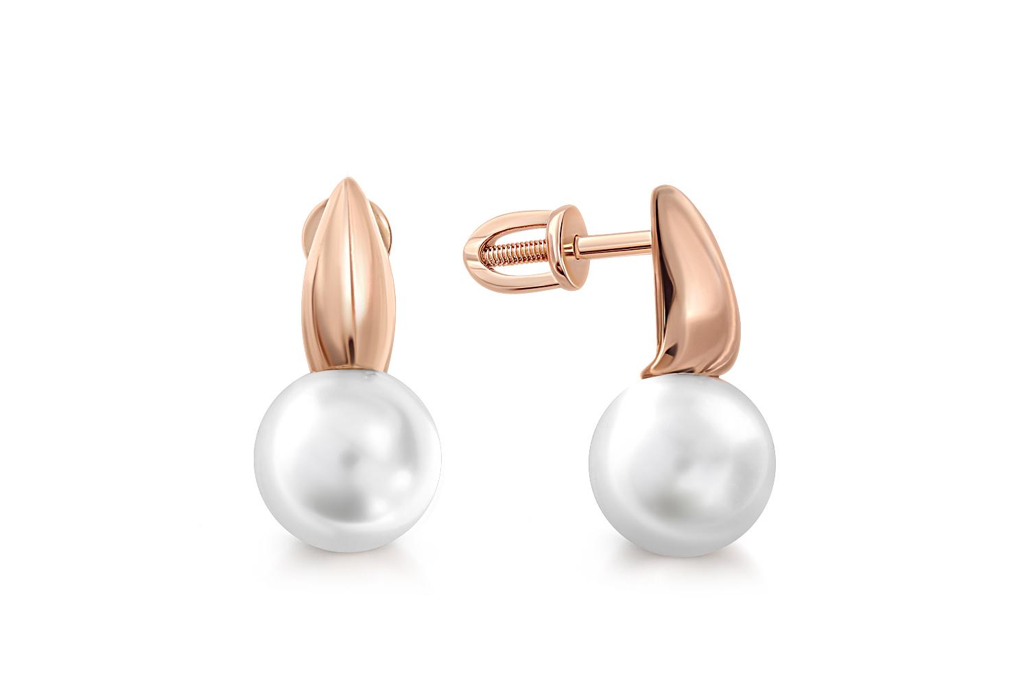 Мастера компании NEWGOLD, приложив всё свое мастерство и искусство, создали для Вас на нашем собственном производстве Серьги-пусеты из красного золота с 2 жемчужинами.