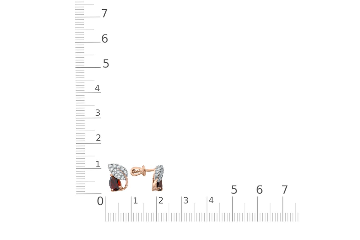 Гранат натуральный, количество 2 шт., огранка груша, размер 6ˣ4 ; Фианит б/цв, количество 12 шт., огранка круг, размер 1,25 мм ; Фианит б/цв, количество 14 шт., огранка круг, размер 1 мм