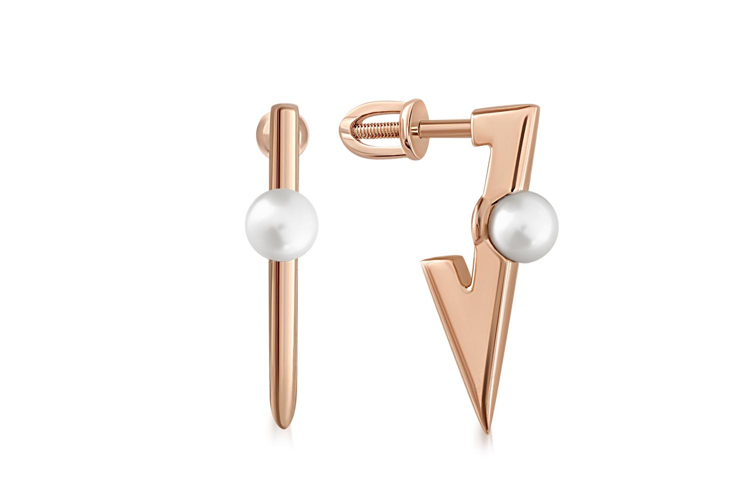 Закажите Серьги-пусеты из красного золота с 2 жемчужинами с получением в Москве через курьерскую службу доставки напрямую с нашего производственного склада завода NEWGOLD!