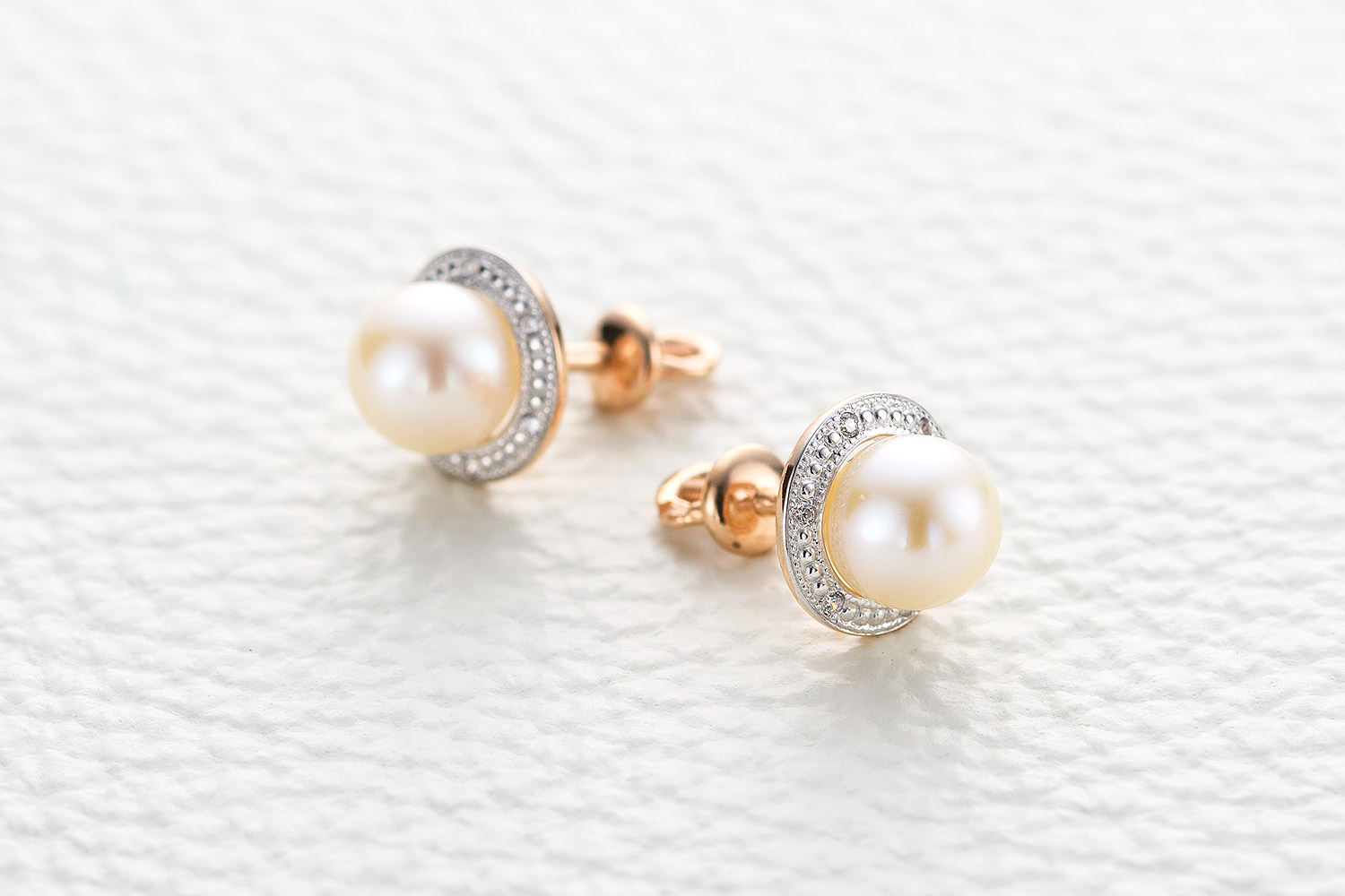 Мастера компании NEWGOLD, приложив всё свое мастерство и искусство, создали для Вас на нашем собственном производстве Серьги-пусеты из красного золота с 2 жемчужинами и 12 фианитами.