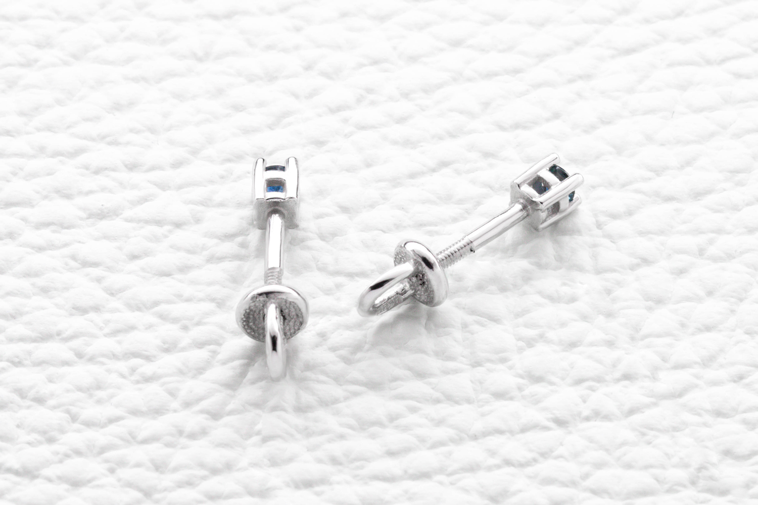 Мастера компании NEWGOLD, приложив всё свое мастерство и искусство, создали для Вас на нашем собственном производстве Серьги-пусеты из белого золота с 2 сапфирами.