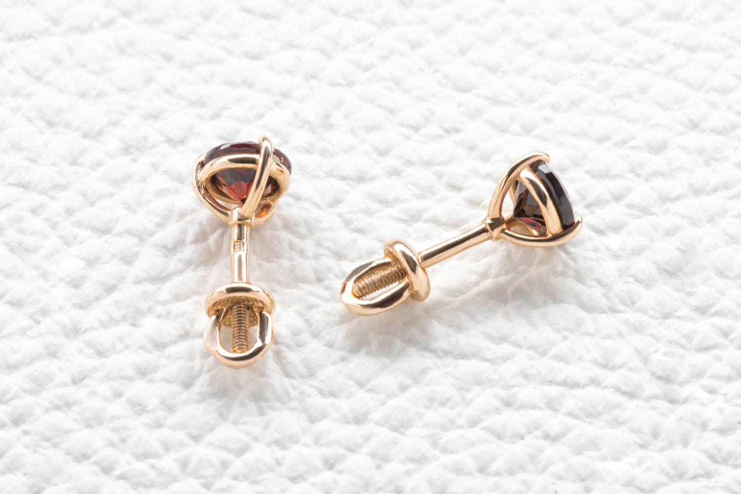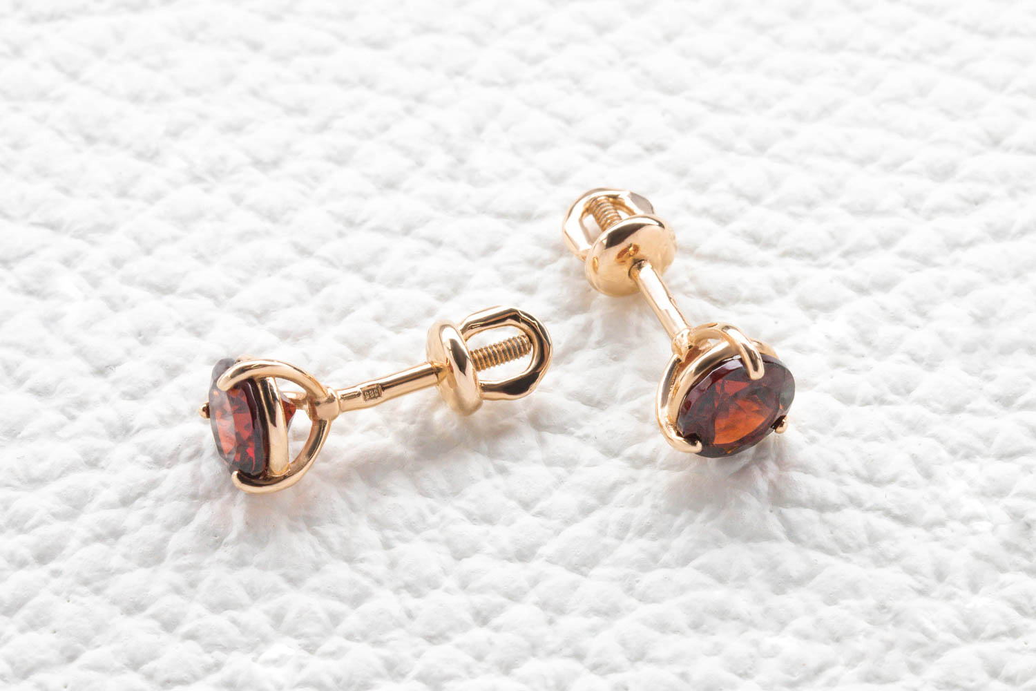 Мастера компании NEWGOLD, приложив всё свое мастерство и искусство, создали для Вас на нашем собственном производстве Серьги-пусеты из красного золота с 2 гранатами.