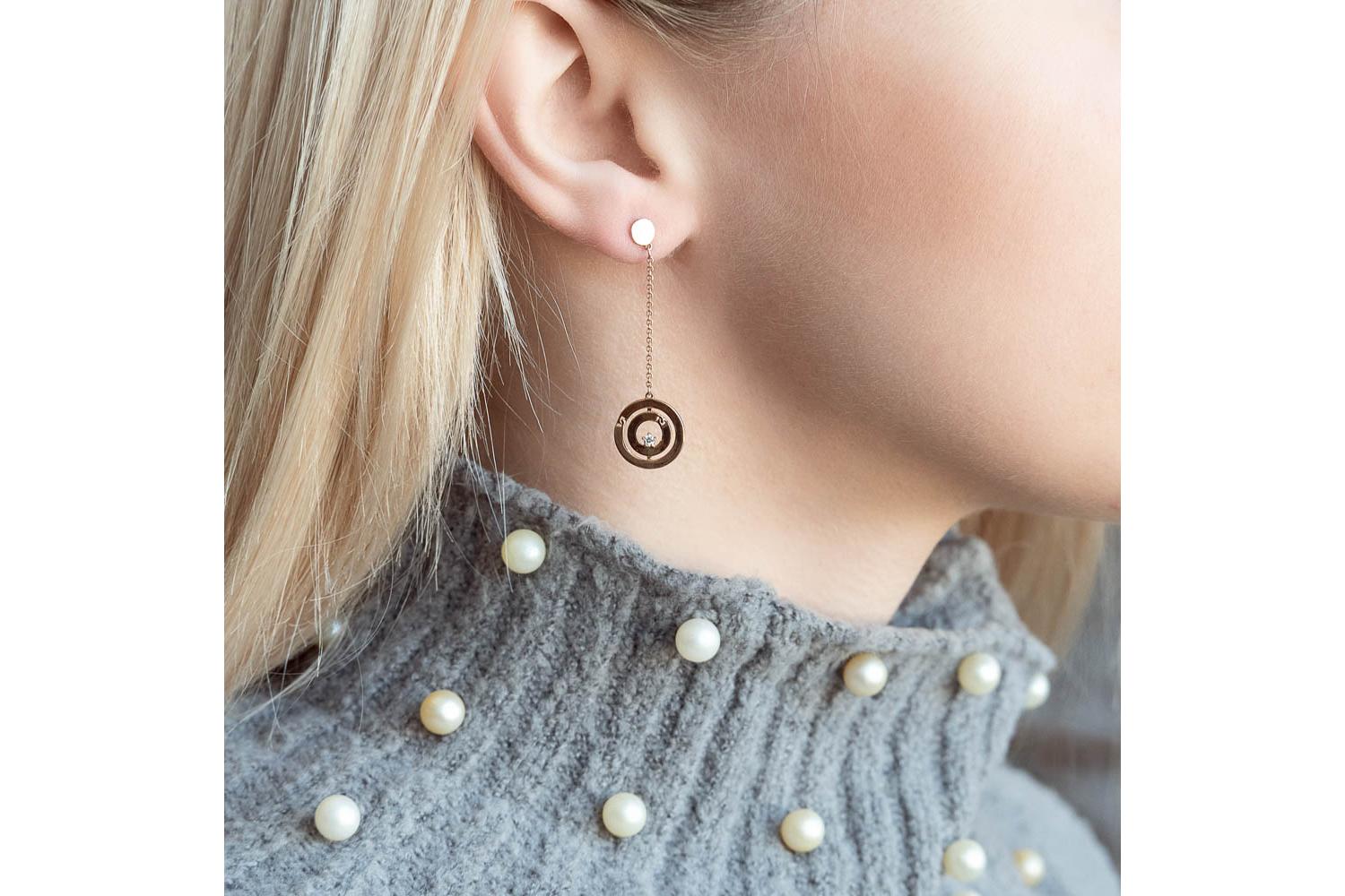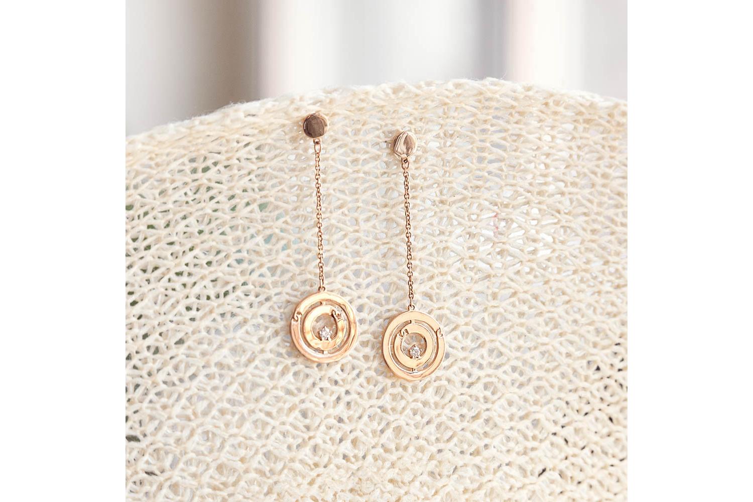 Мастера компании NEWGOLD, приложив всё свое мастерство и искусство, создали для Вас на нашем собственном производстве Серьги-пусеты Круги из красного золота с 2 бриллиантами.