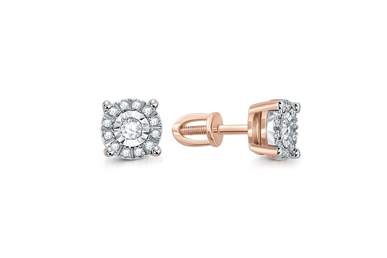 Мастера компании NEWGOLD, приложив всё свое мастерство и искусство, создали для Вас на нашем собственном производстве Серьги-пусеты из красного золота с 26 бриллиантами.