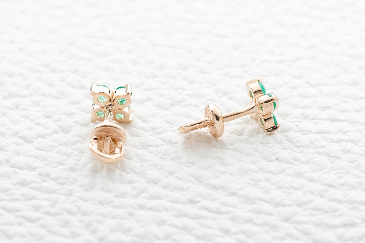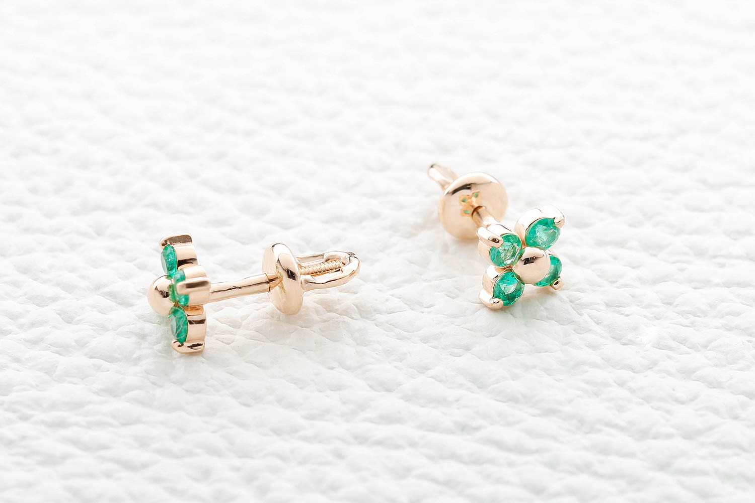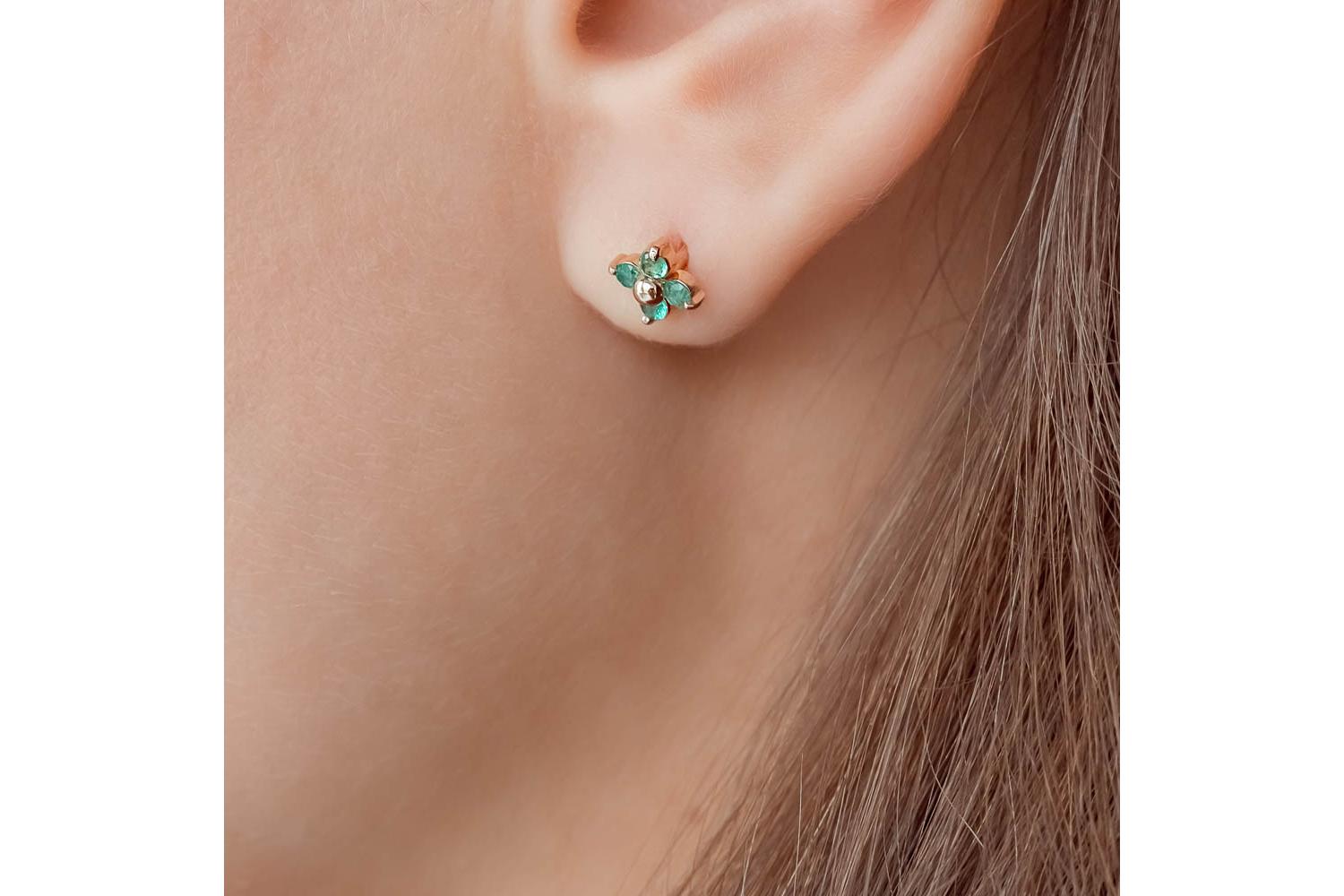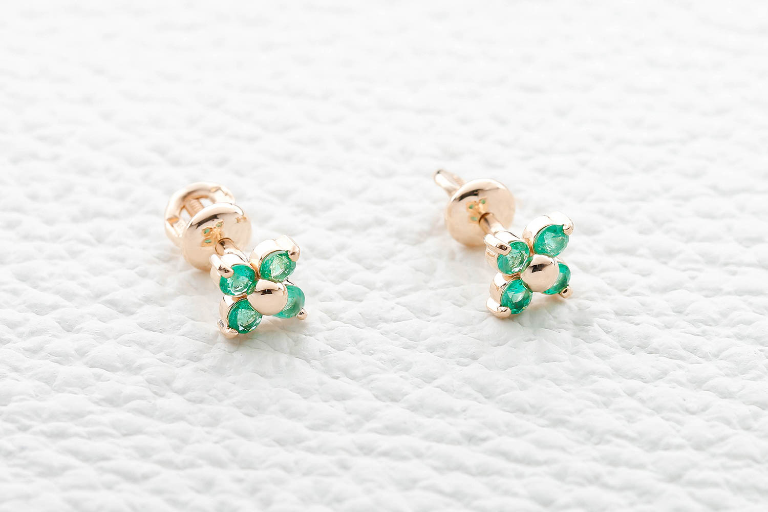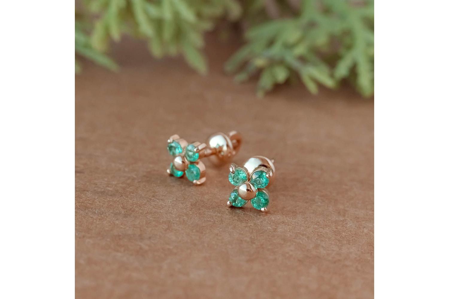 Мастера компании NEWGOLD, приложив всё свое мастерство и искусство, создали для Вас на нашем собственном производстве Серьги-пусеты из красного золота с 8 изумрудами.