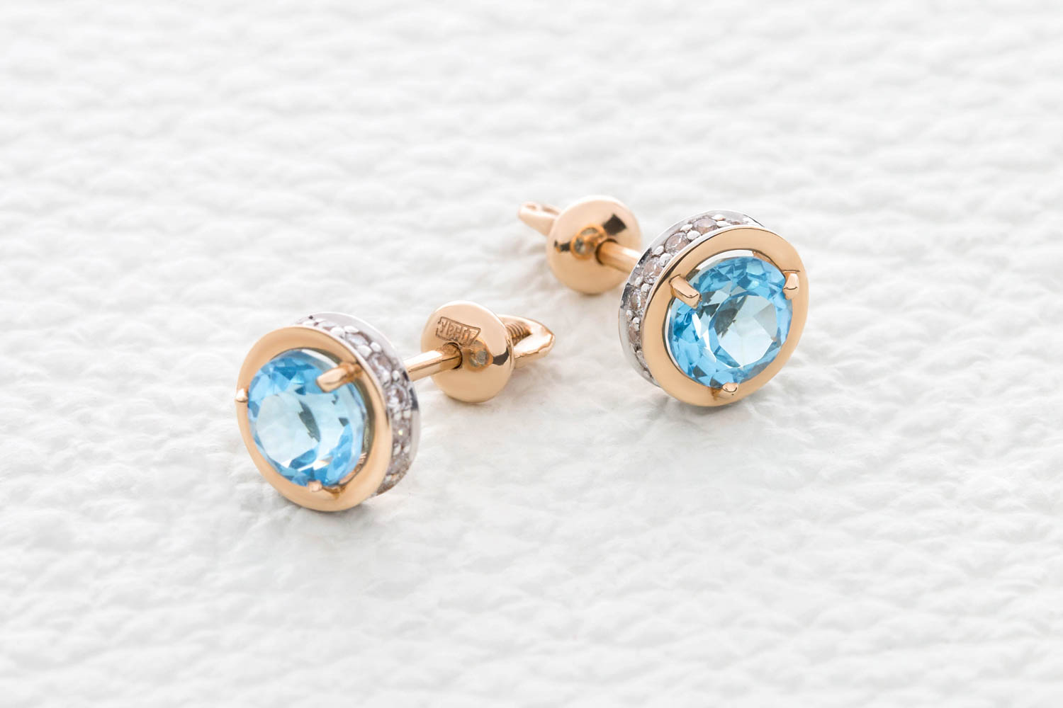 Закажите Серьги-пусеты из красного золота с 2 топазами swiss и 32 фианитами с получением в Москве через курьерскую службу доставки напрямую с нашего производственного склада завода NEWGOLD!
