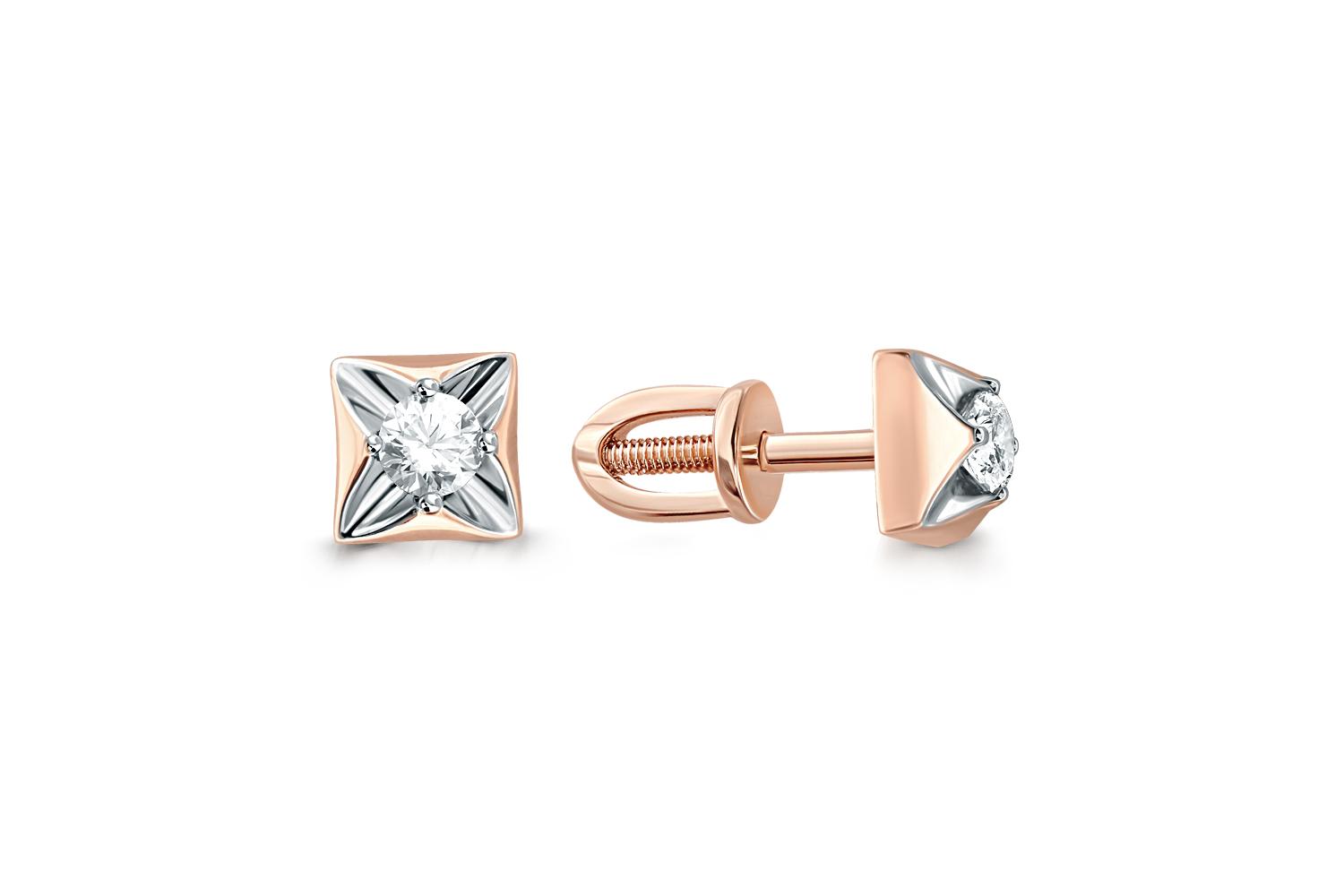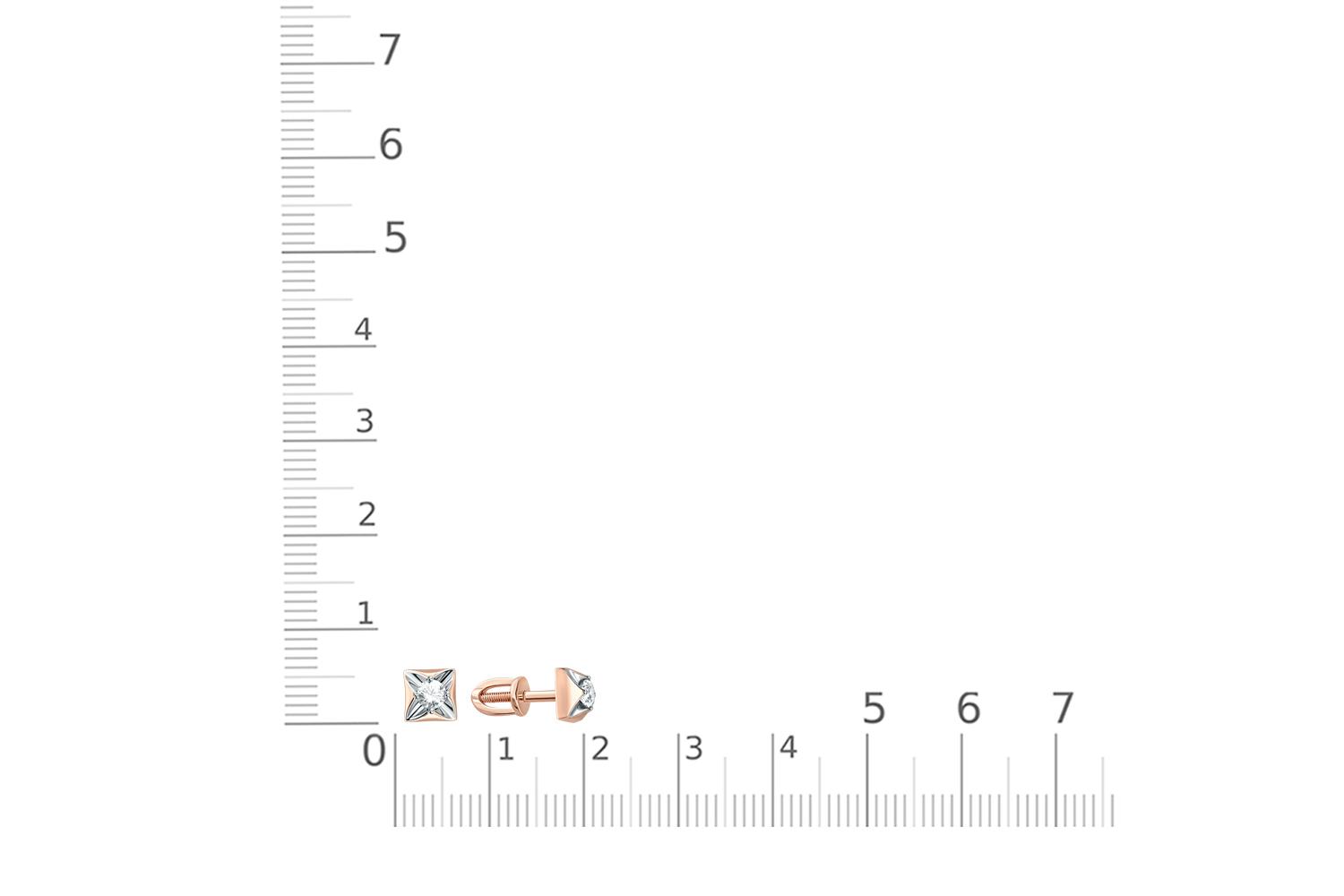 Мастера компании NEWGOLD, приложив всё свое мастерство и искусство, создали для Вас на нашем собственном производстве Серьги-пусеты Квадраты из красного золота с 2 фианитами.
