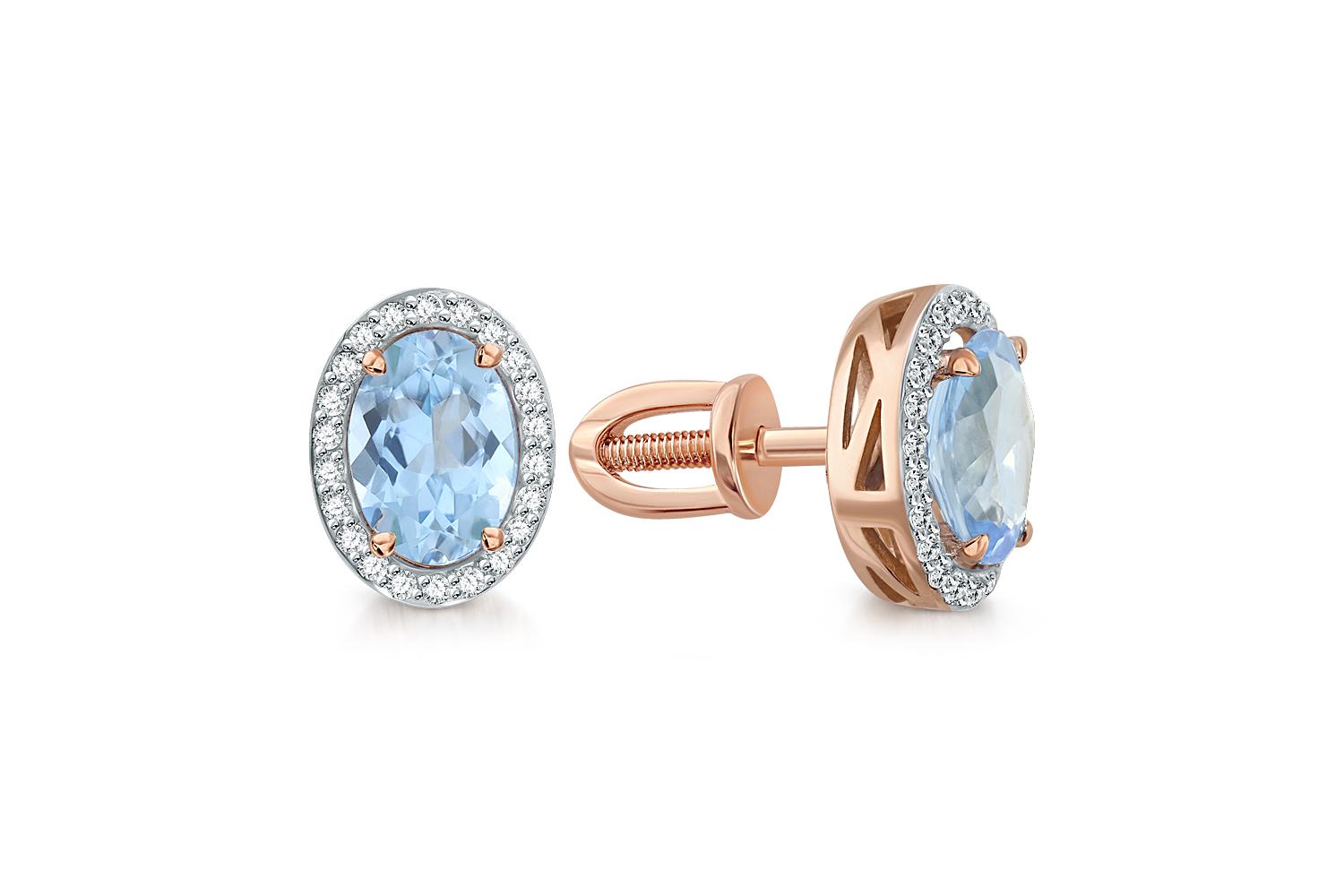 Мастера компании NEWGOLD, приложив всё свое мастерство и искусство, создали для Вас на нашем собственном производстве Серьги-пусеты из красного золота с 2 топазами sky и 44 фианитами.