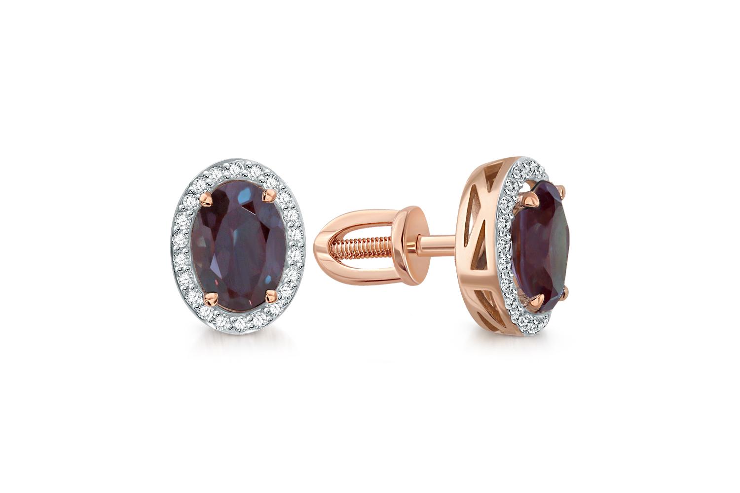Мастера компании NEWGOLD, приложив всё свое мастерство и искусство, создали для Вас на нашем собственном производстве Серьги-пусеты из красного золота с 2 александритами и 44 фианитами.