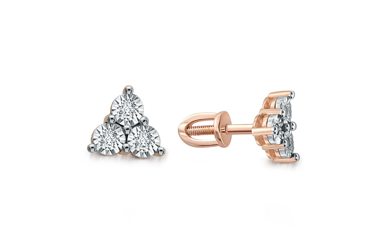 Мастера компании NEWGOLD, приложив всё свое мастерство и искусство, создали для Вас на нашем собственном производстве Серьги-пусеты из красного золота с 6 бриллиантами.