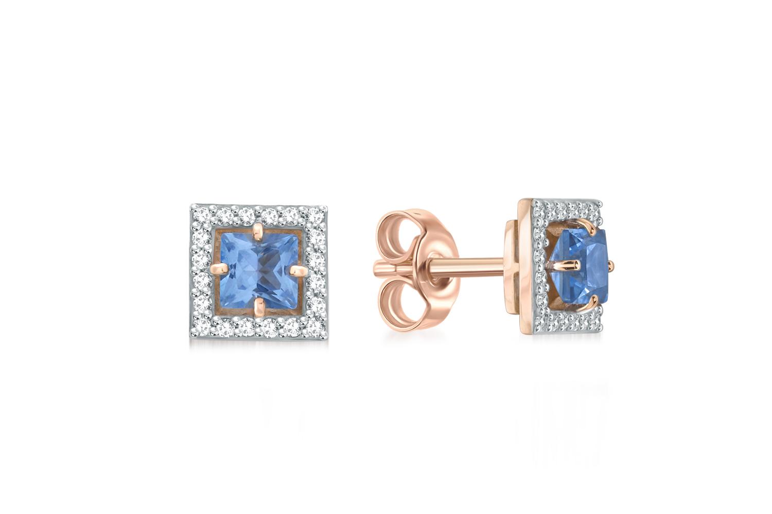 Коллекция: Royals. Металл: Золото, цвет: Красный , проба: 585. Вставки: Топаз Swiss натуральный, количество 2 шт. , огранка квадрат, размер 4*4 ; Фианит б/цв, количество 40 шт.