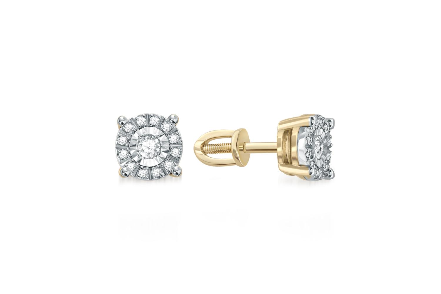 Закажите Серьги-пусеты из жёлтого золота с 26 бриллиантами с получением в Москве через курьерскую службу доставки напрямую с нашего производственного склада завода NEWGOLD!