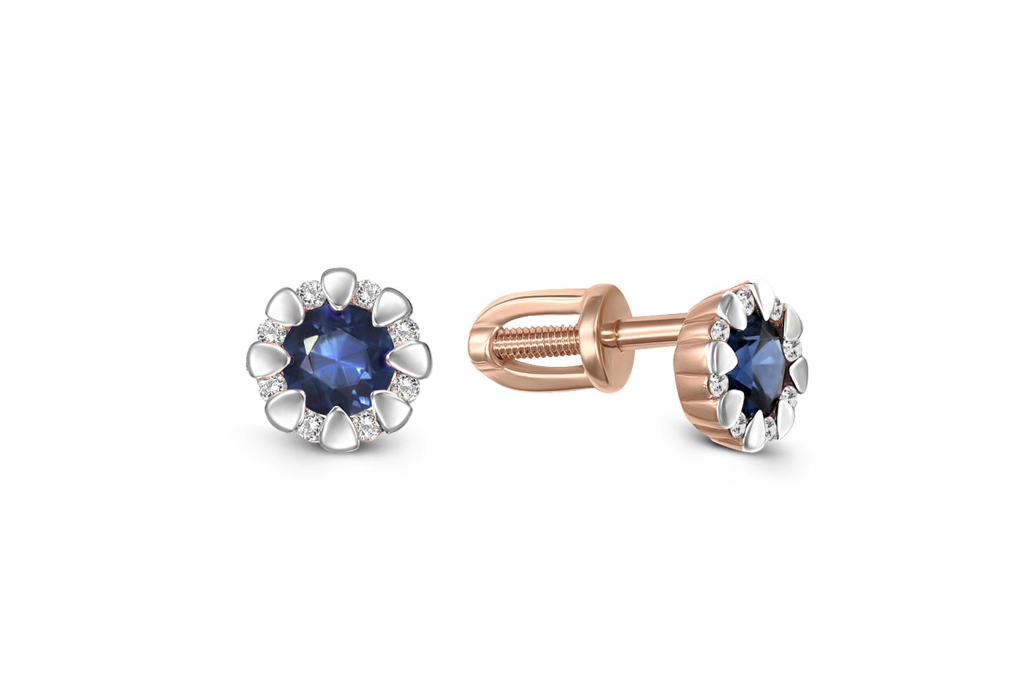 Закажите Серьги-пусеты из красного золота с 2 сапфирами и 16 бриллиантами с получением в Москве через курьерскую службу доставки напрямую с нашего производственного склада завода NEWGOLD!