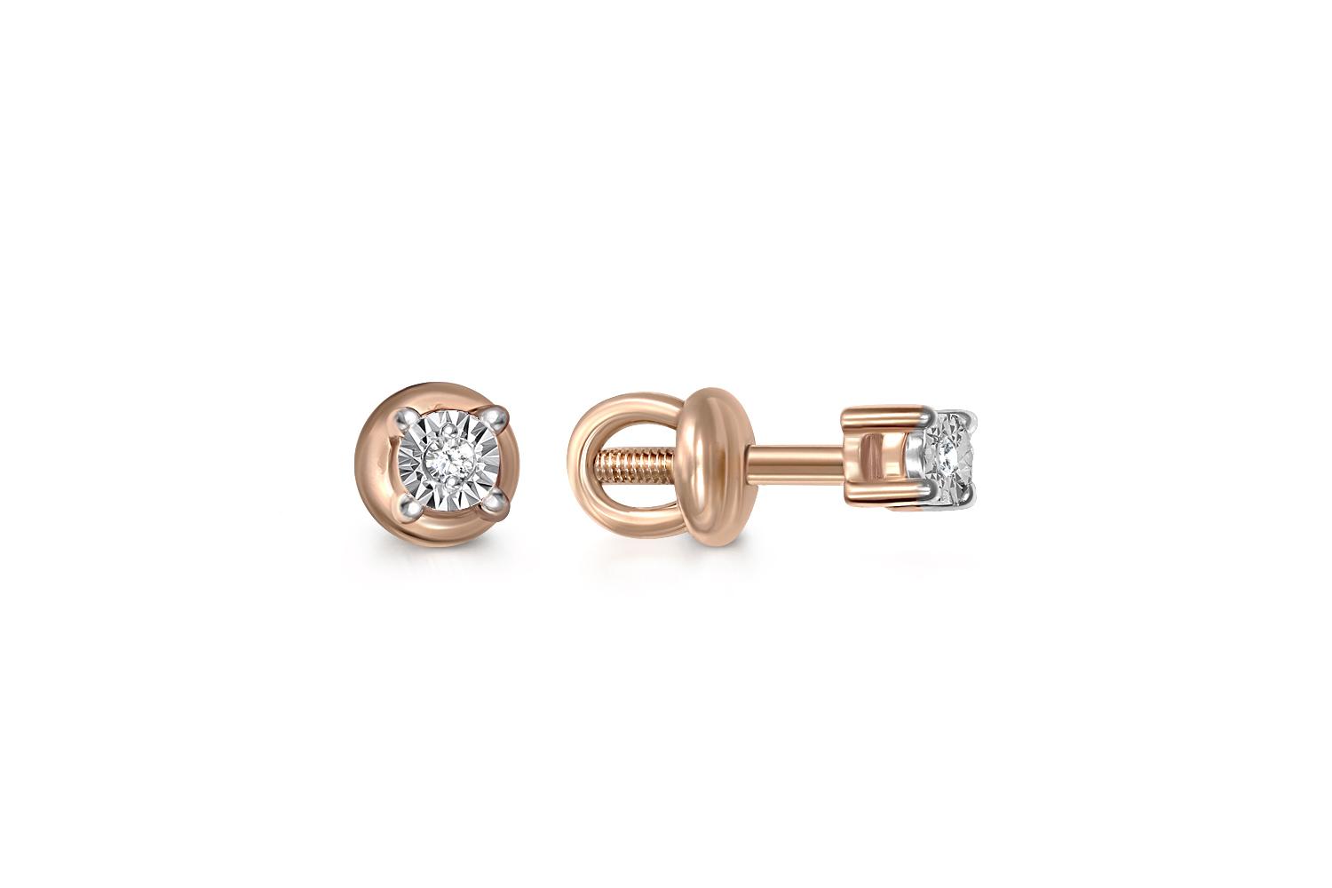 Серьги-пусеты из красного золота с 2 бриллиантами. Пусеты из золота 585 пробы бренда NEWGOLD. Серьги-пусеты великолепного исполнения. Стильные золотые серьги гвоздики с винтовым замком – это ювелирное украшение, которое подчеркнет красоту и индивидуальность каждой женщины.