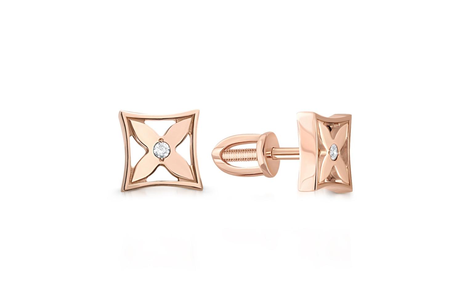 Мастера компании NEWGOLD, приложив всё свое мастерство и искусство, создали для Вас на нашем собственном производстве Серьги-пусеты Клевер из красного золота с 2 фианитами.