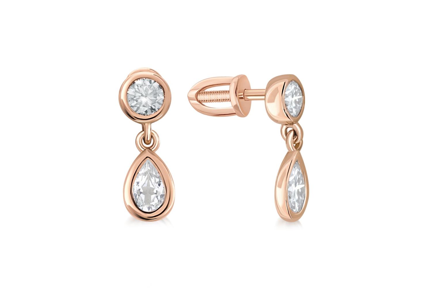 Мастера компании NEWGOLD, приложив всё свое мастерство и искусство, создали для Вас на нашем собственном производстве Серьги-пусеты из красного золота с горным хрусталём и 2 муассанитами.