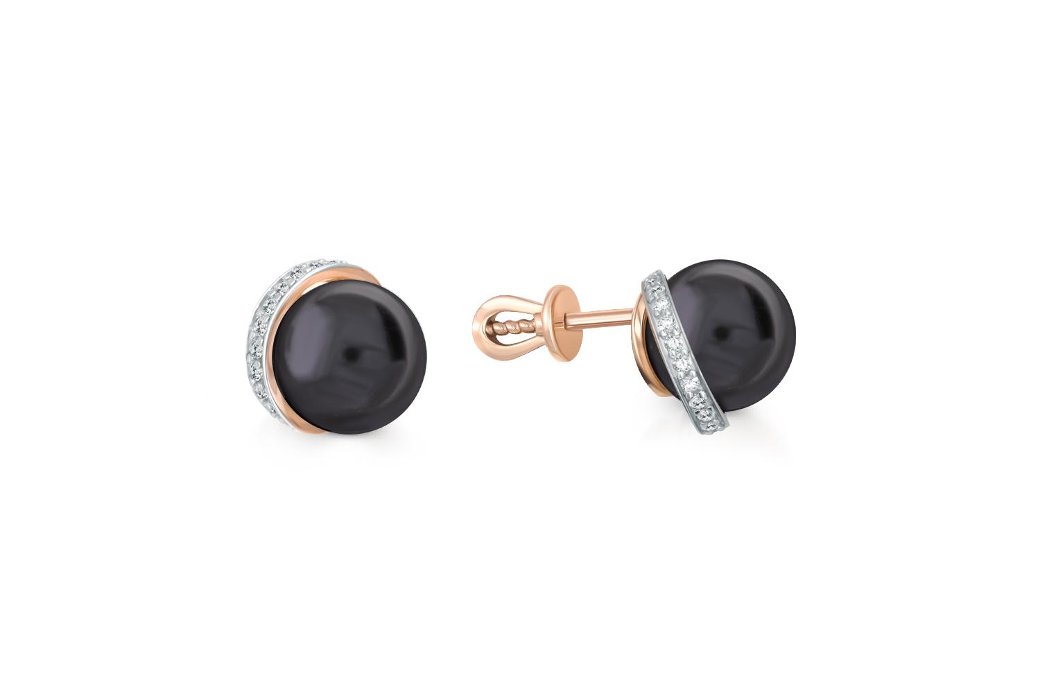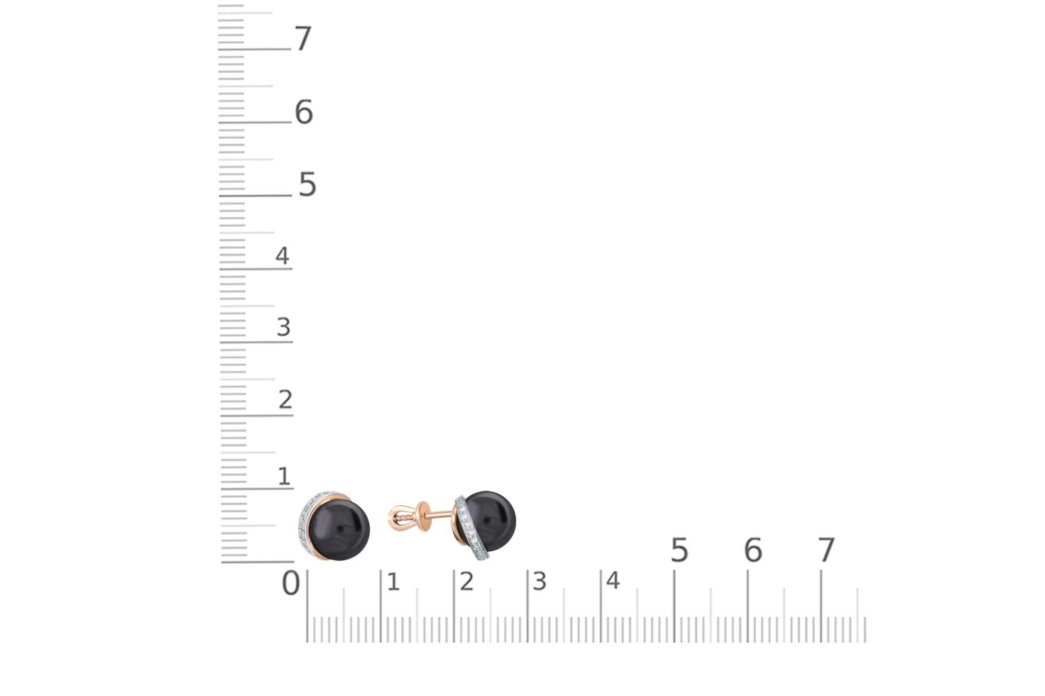 Жемчуг черный культивированный, количество 2 шт., огранка круг, размер 8ˣ8,5 ; Фианит б/цв, количество 28 шт., огранка круг, размер 1 мм