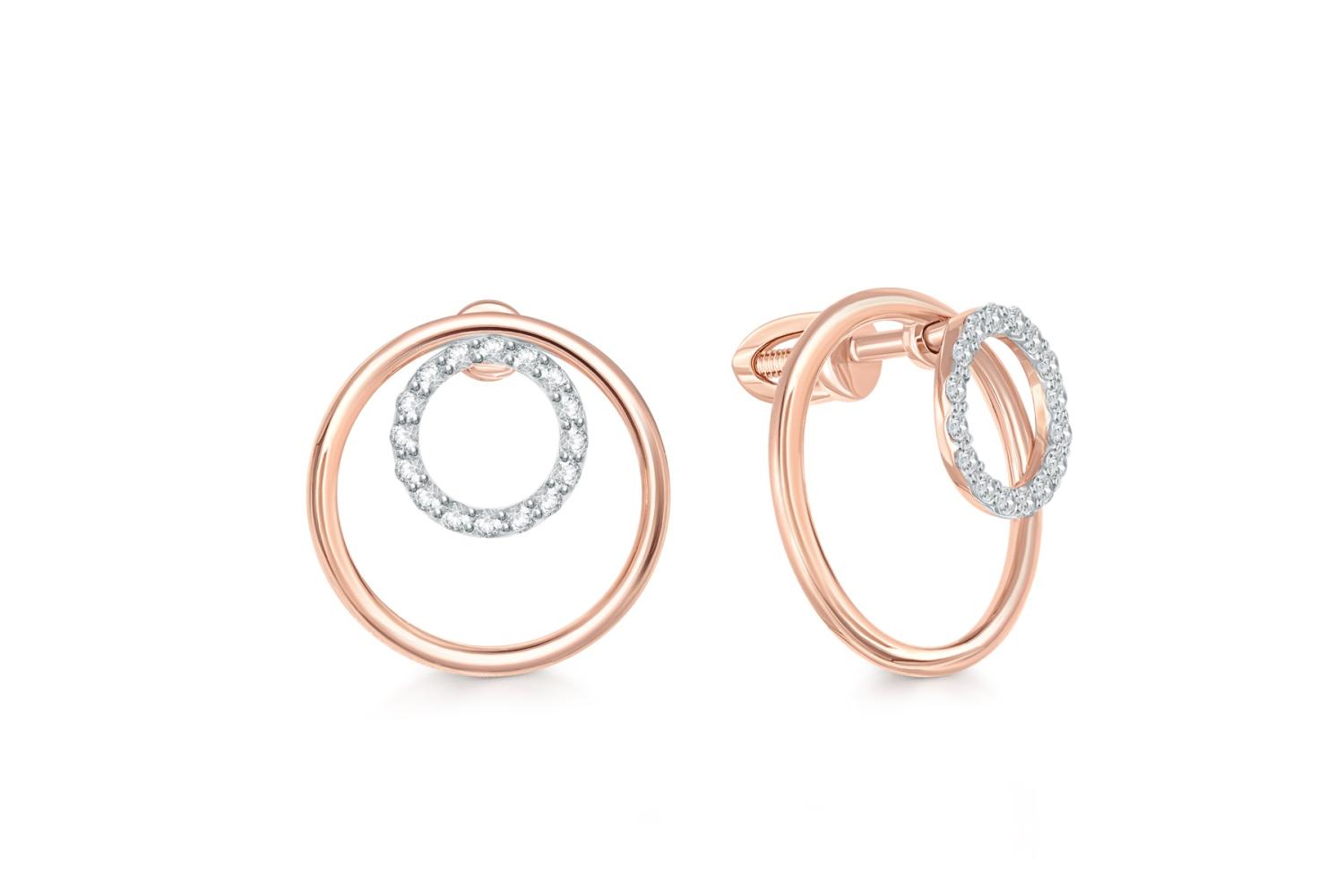 Мастера компании NEWGOLD, приложив всё свое мастерство и искусство, создали для Вас на нашем собственном производстве Серьги-пусеты Круги из красного золота с 32 фианитами.