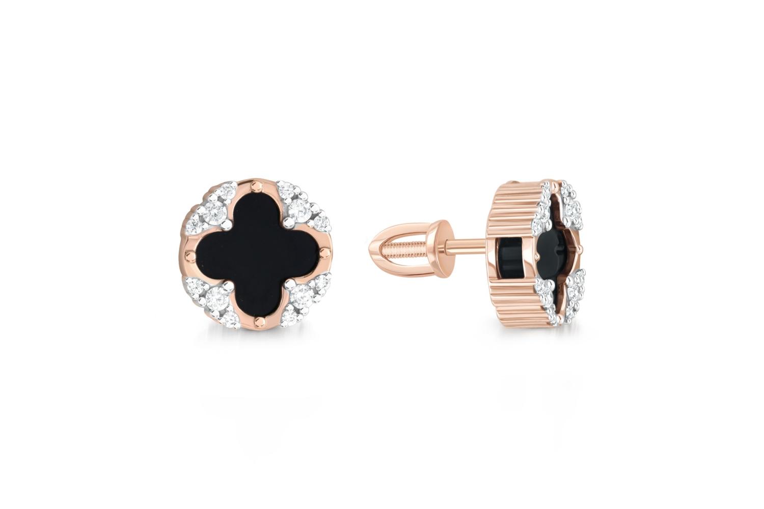 Мастера компании NEWGOLD, приложив всё свое мастерство и искусство, создали для Вас на нашем собственном производстве Серьги-пусеты из красного золота с 2 ониксами и 24 фианитами.