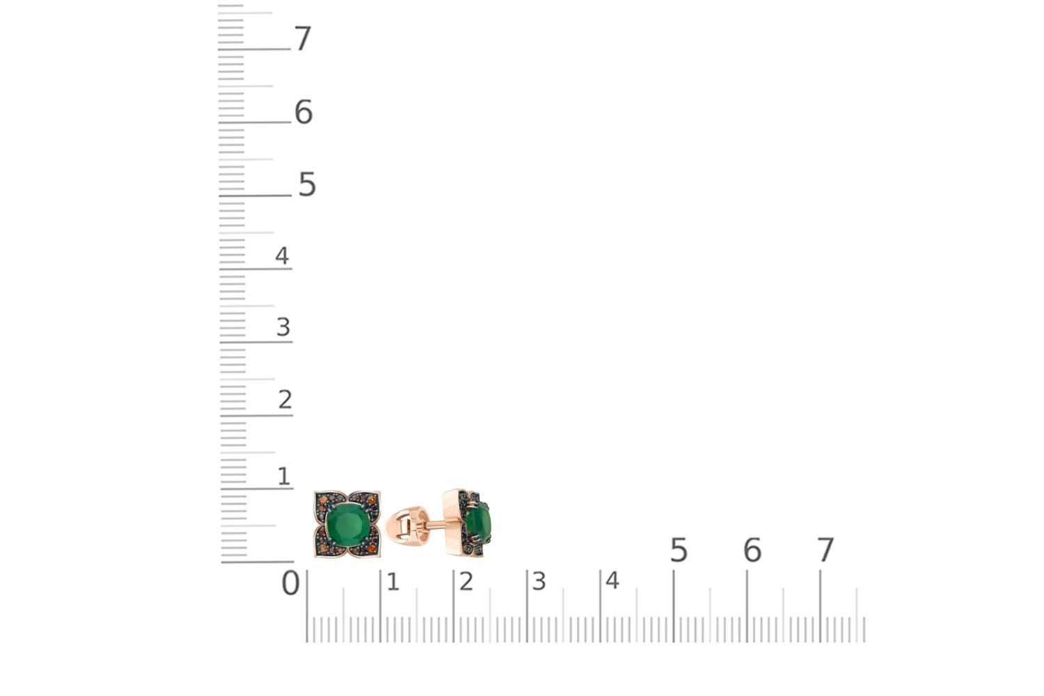 Агат зеленый, количество 2 шт., огранка антик, размер 6ˣ6 ; Фианит коричневый, количество 8 шт., огранка круг, размер 1,25 мм ; Фианит коричневый, количество 32 шт., огранка круг, размер 0,9 мм