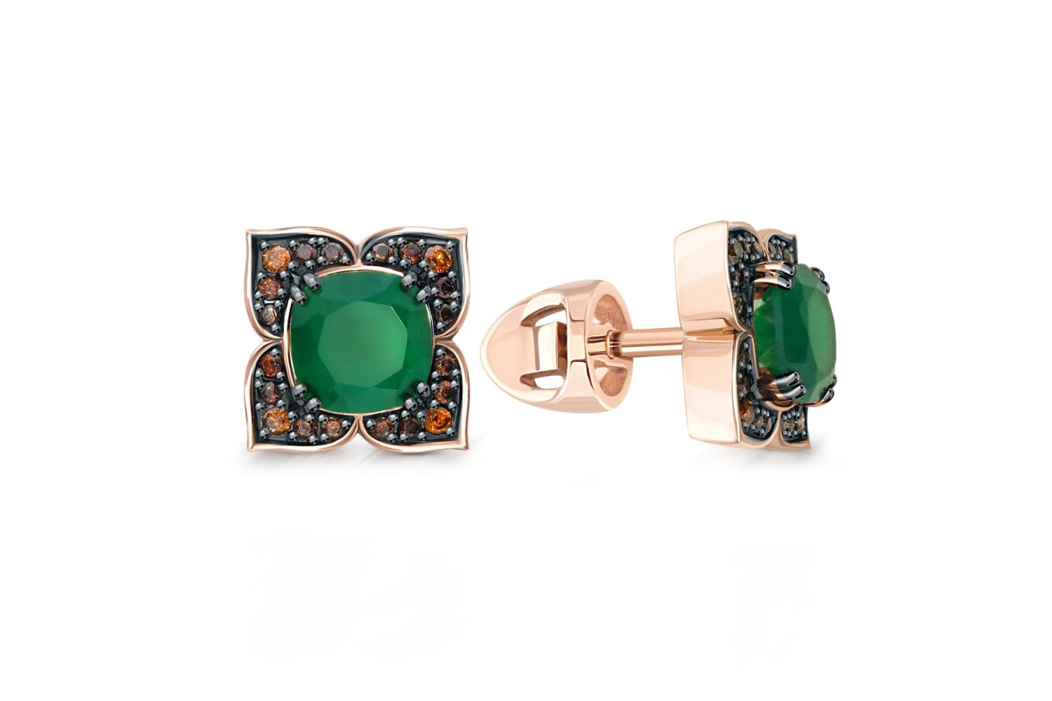 Мастера компании NEWGOLD, приложив всё свое мастерство и искусство, создали для Вас на нашем собственном производстве Серьги-пусеты Цветы из красного золота с 2 агатами и 40 фианитами.